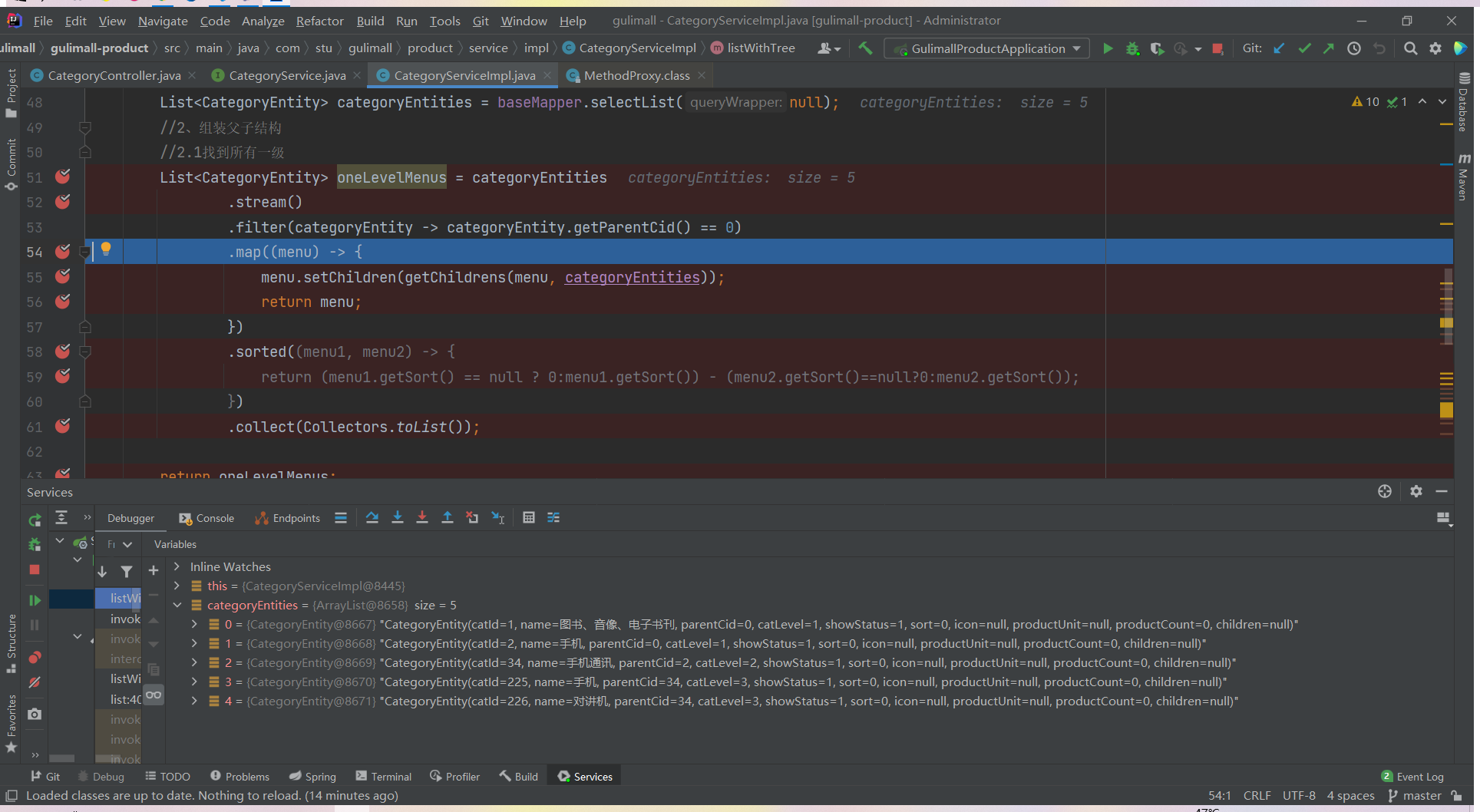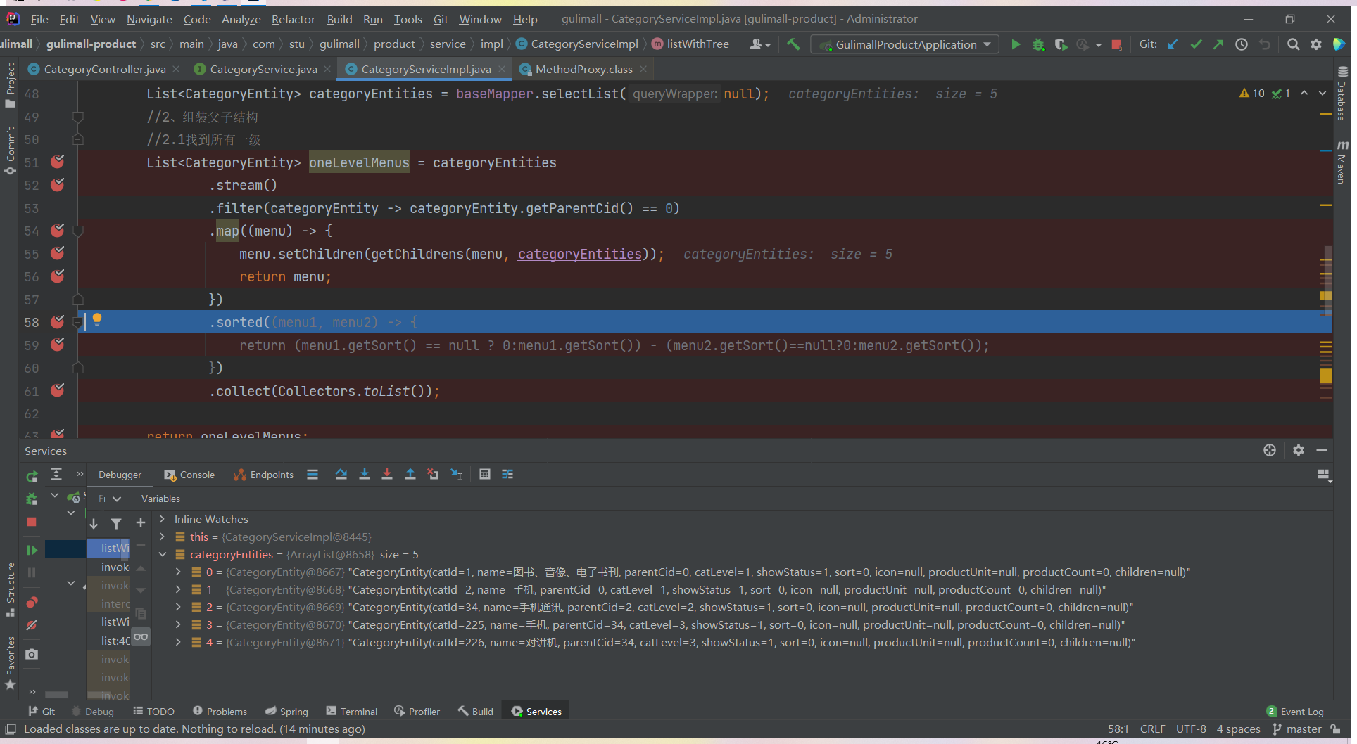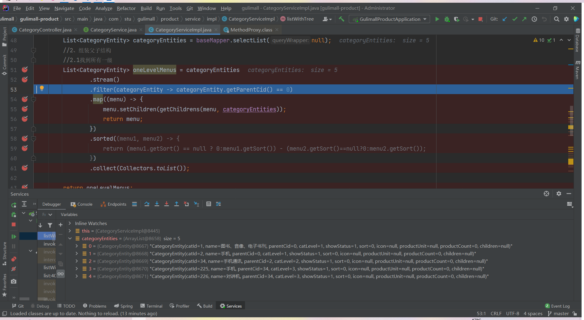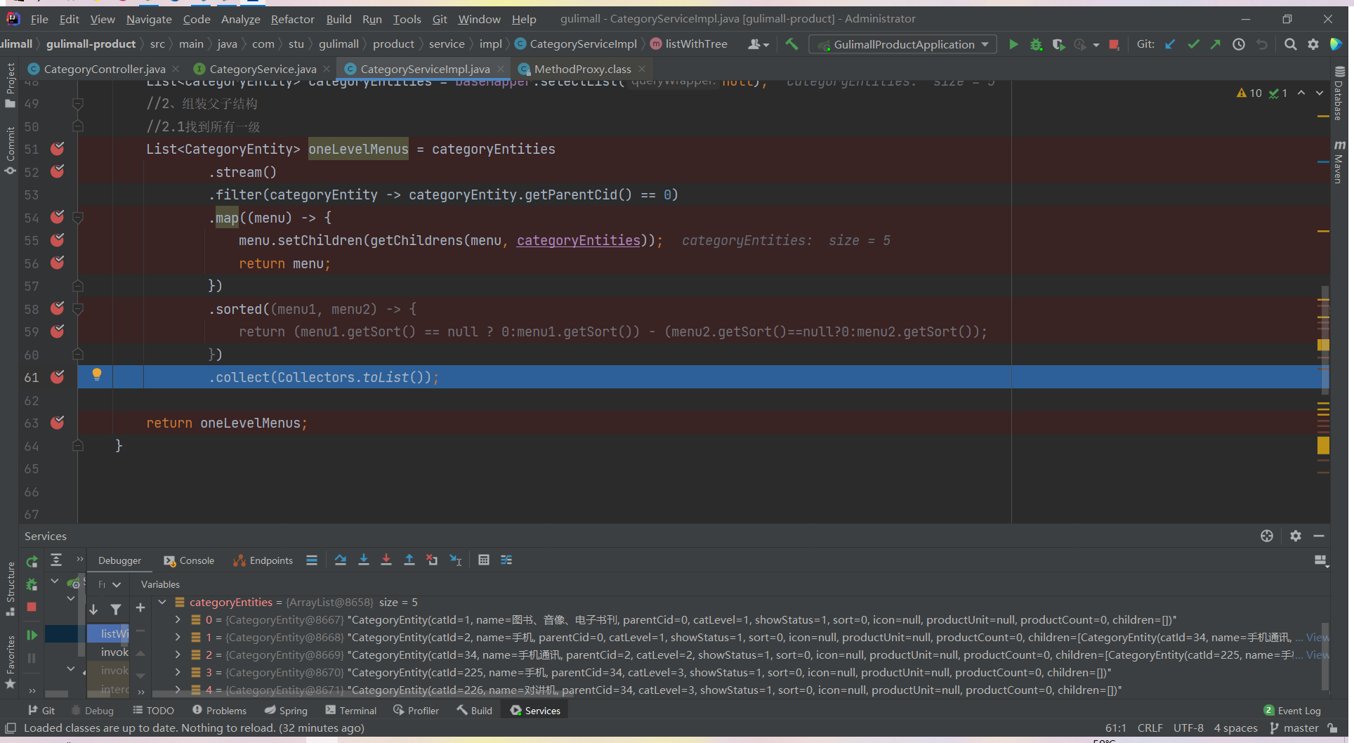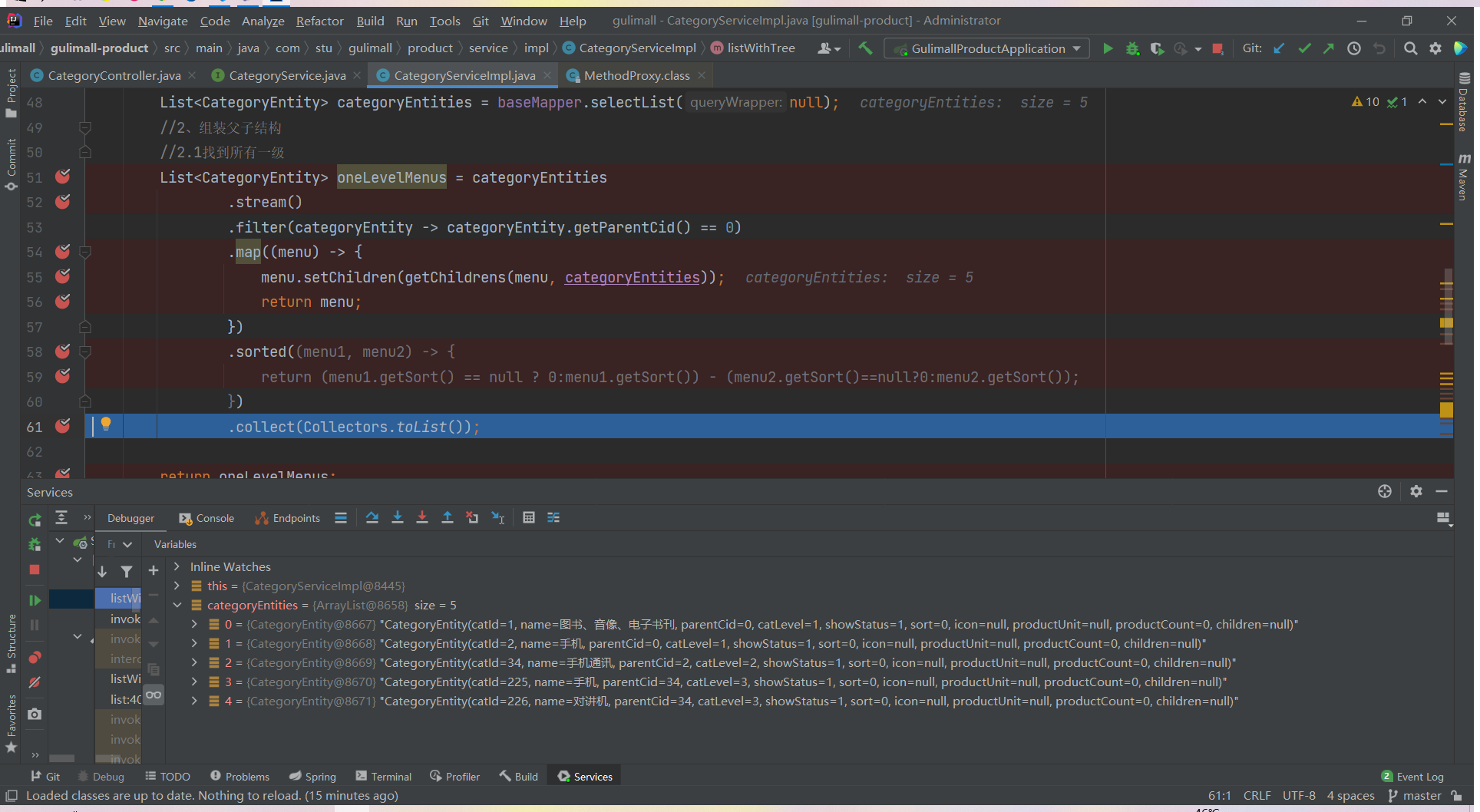 List<CategoryEntity> list = categoryService.listWithTree();