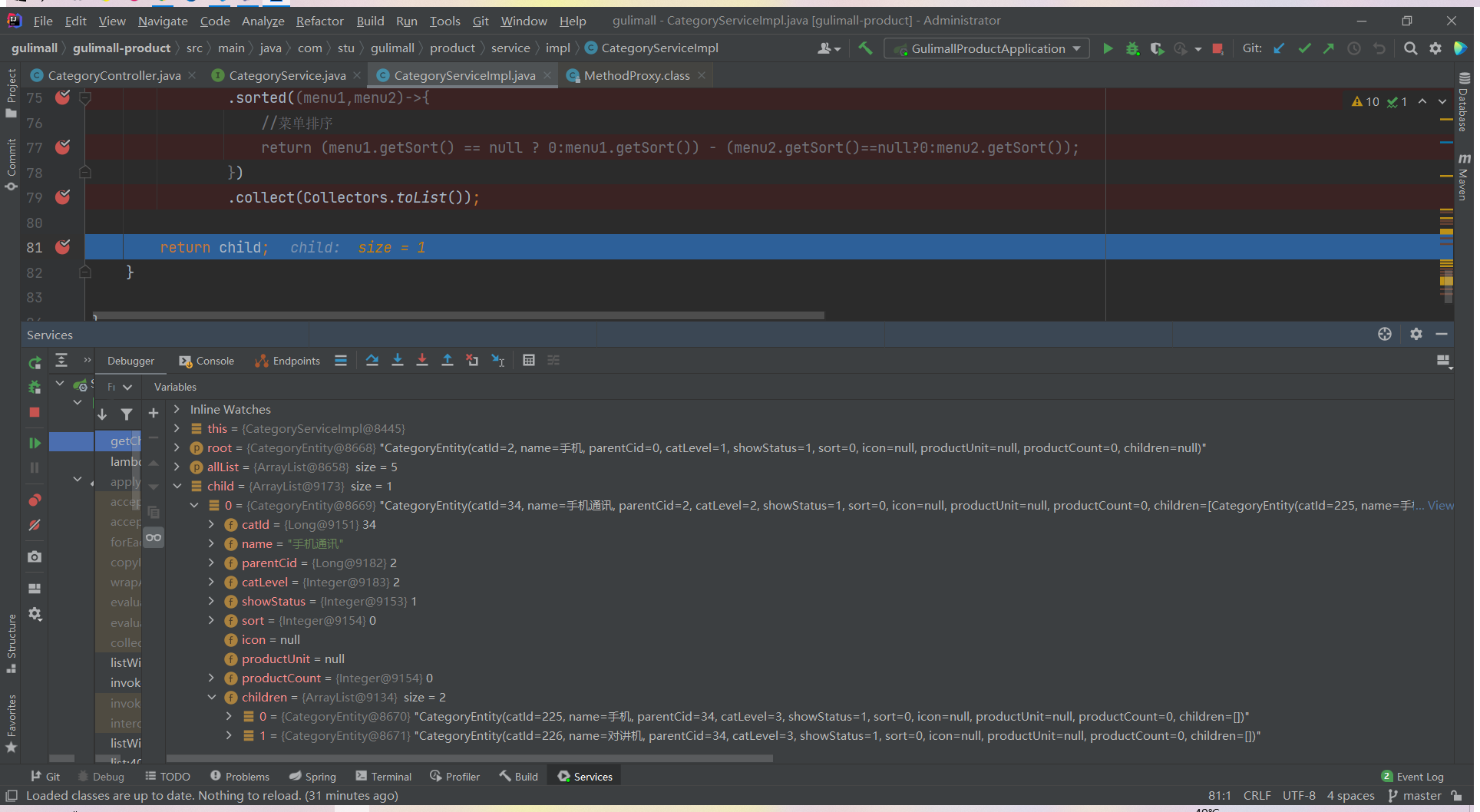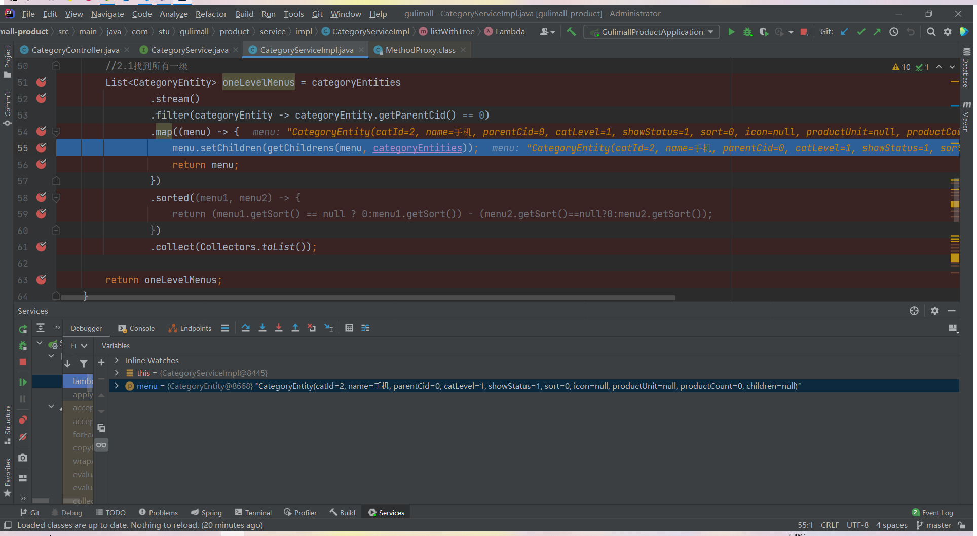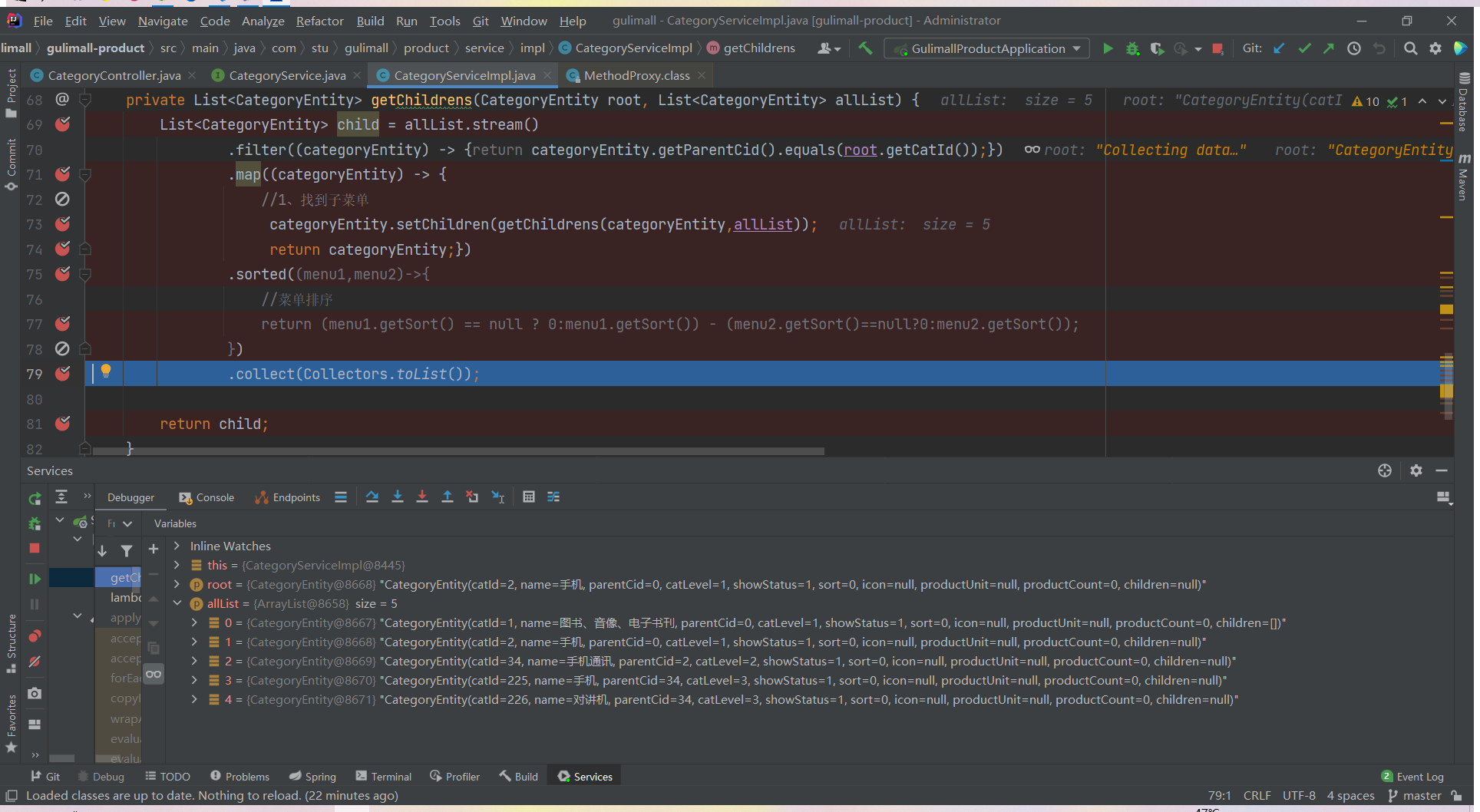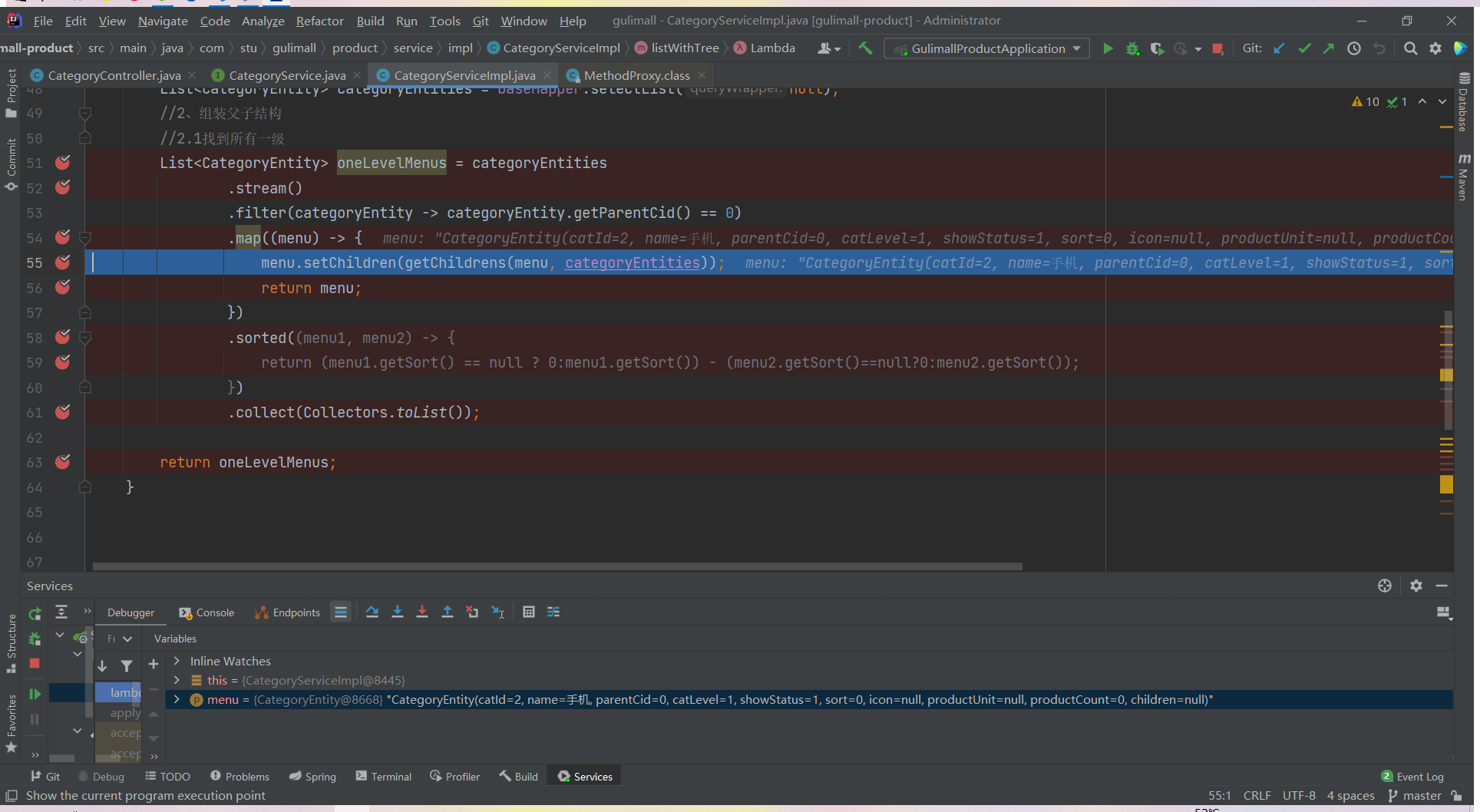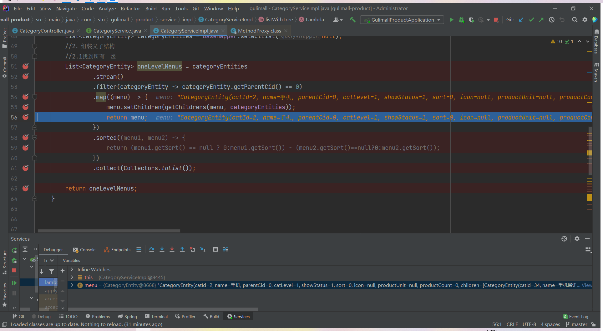 List<CategoryEntity> list = categoryService.listWithTree();