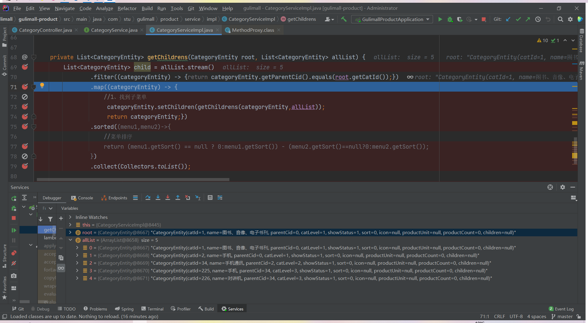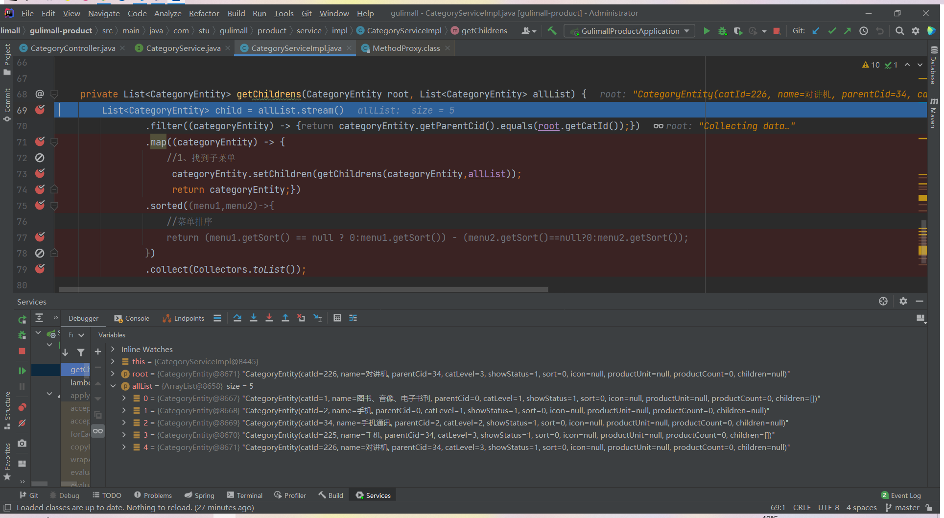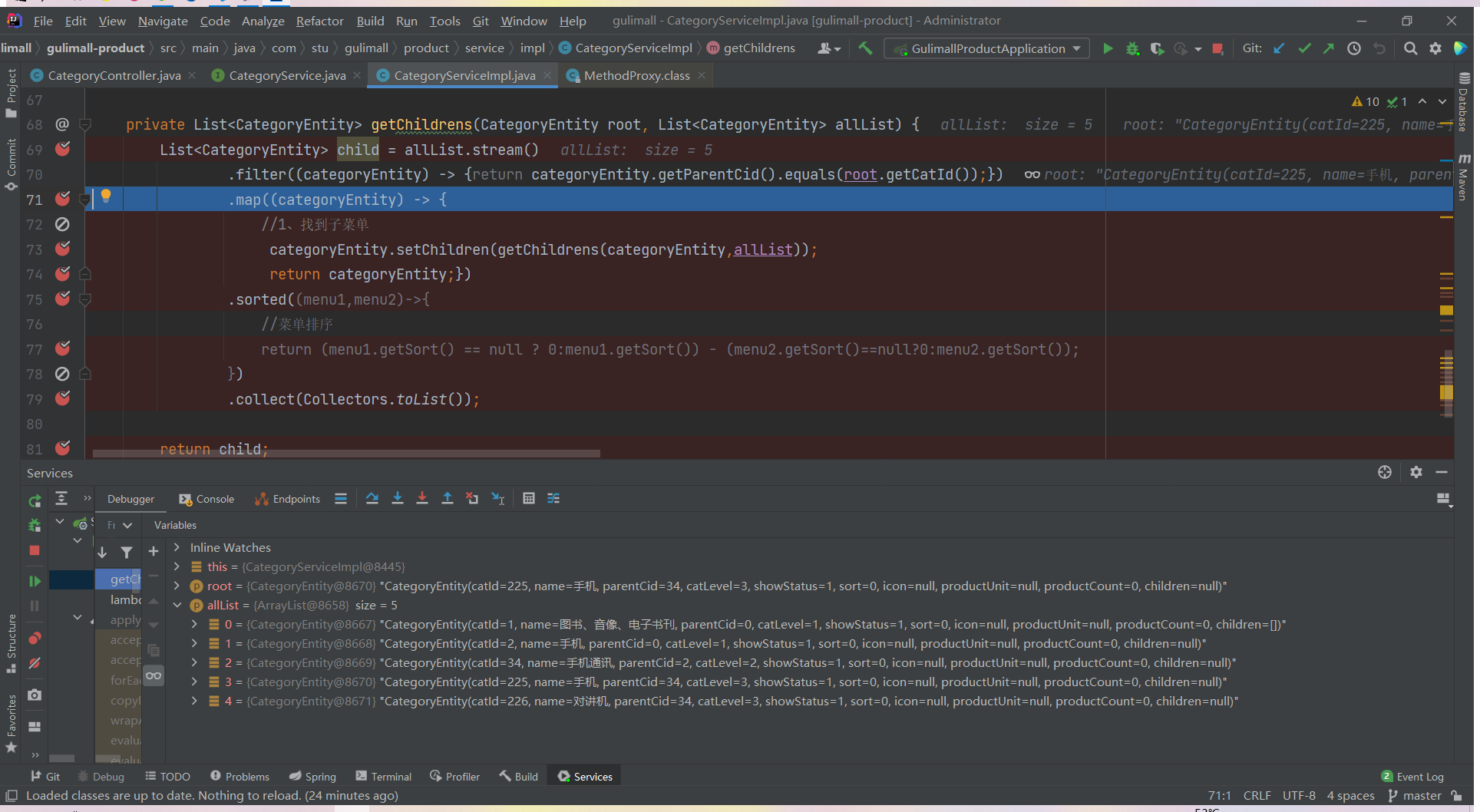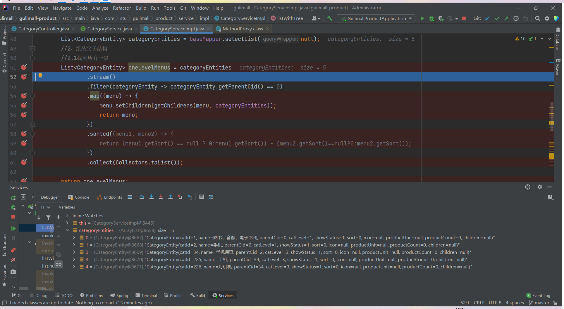 List<CategoryEntity> list = categoryService.listWithTree();