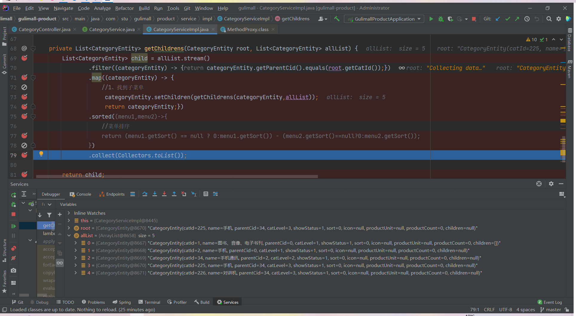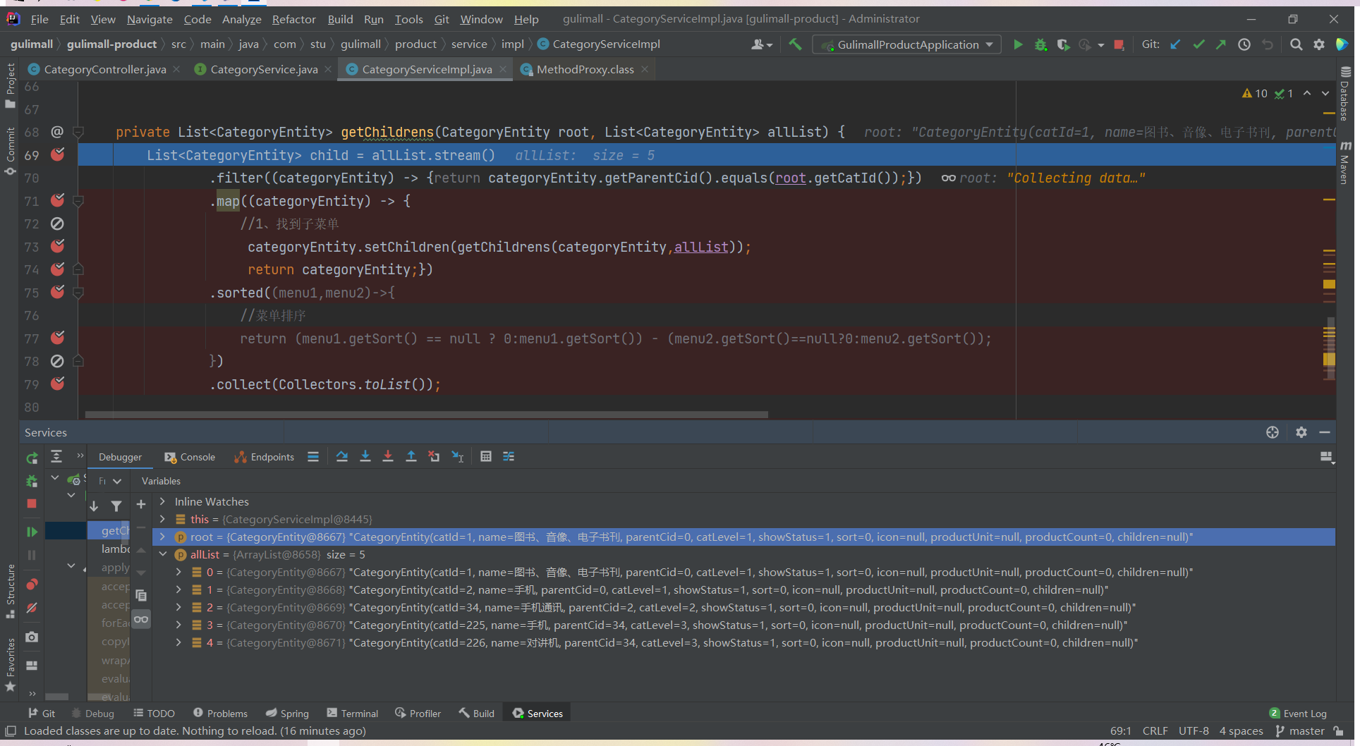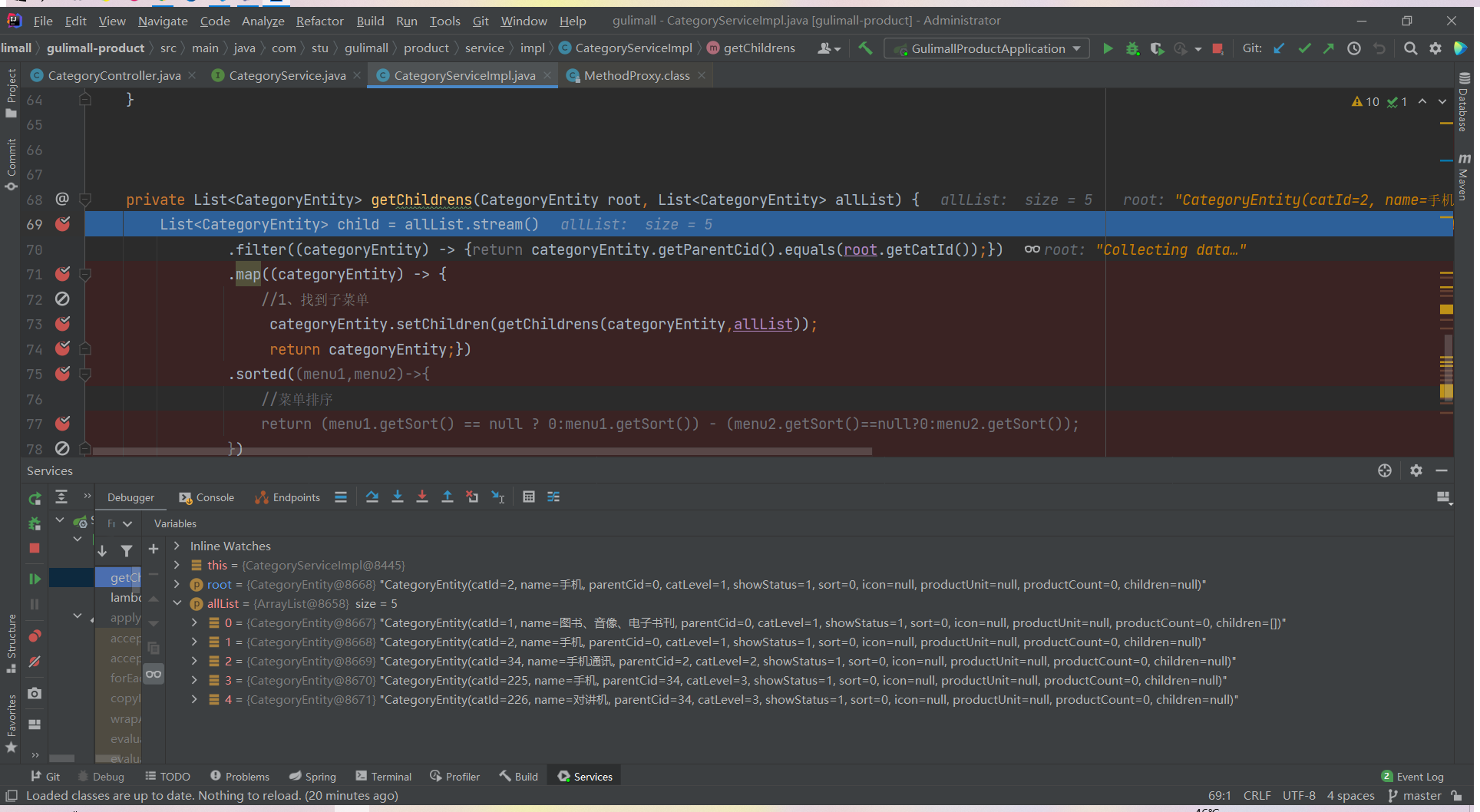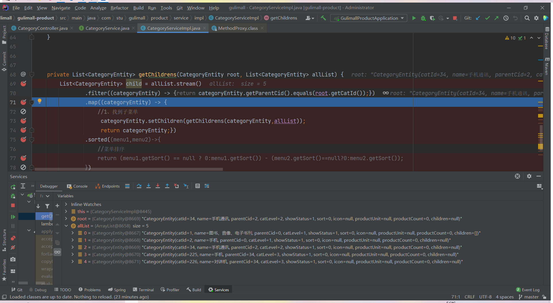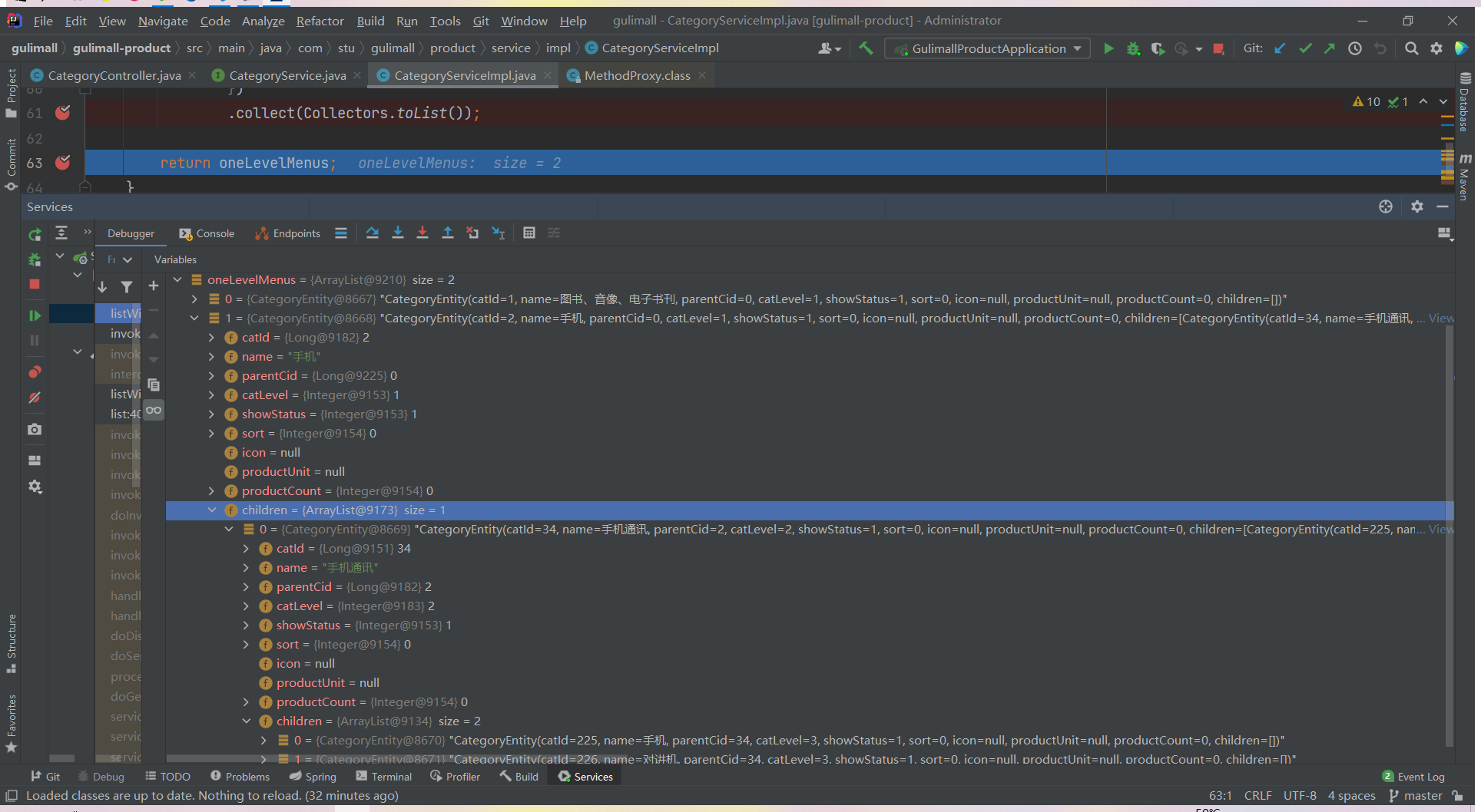 List<CategoryEntity> list = categoryService.listWithTree();