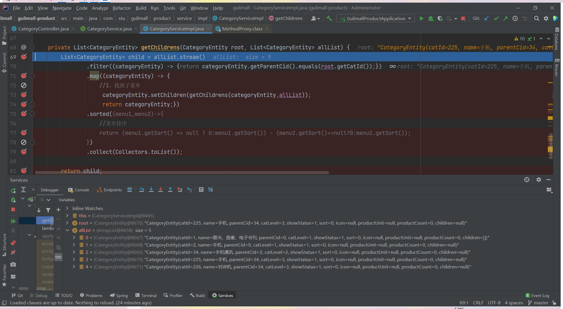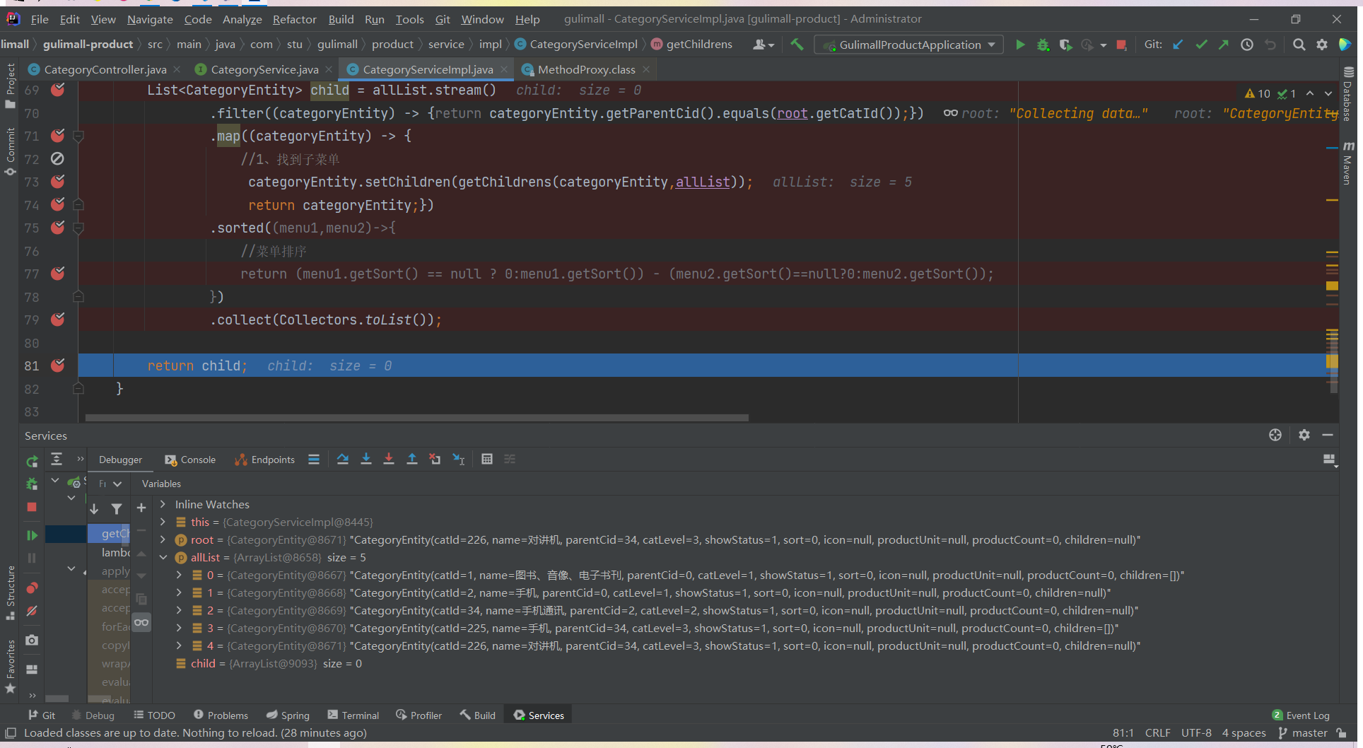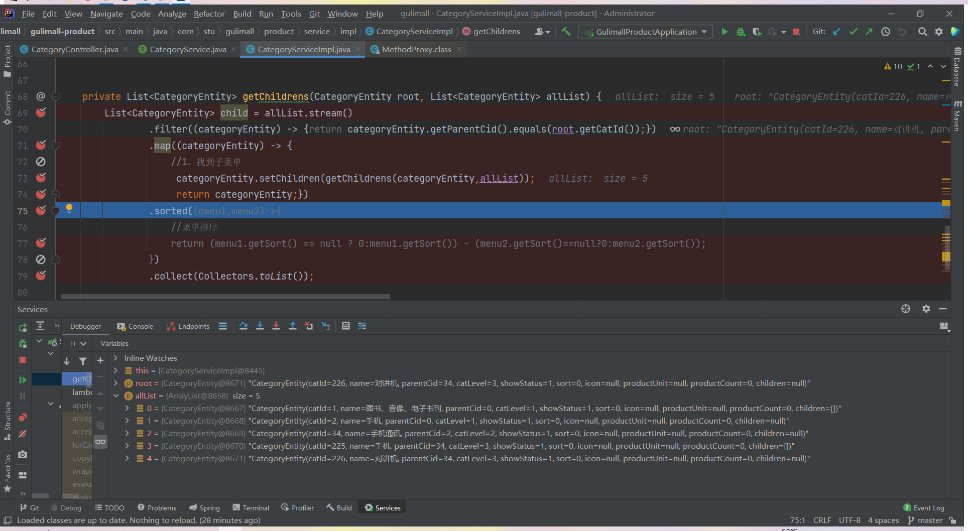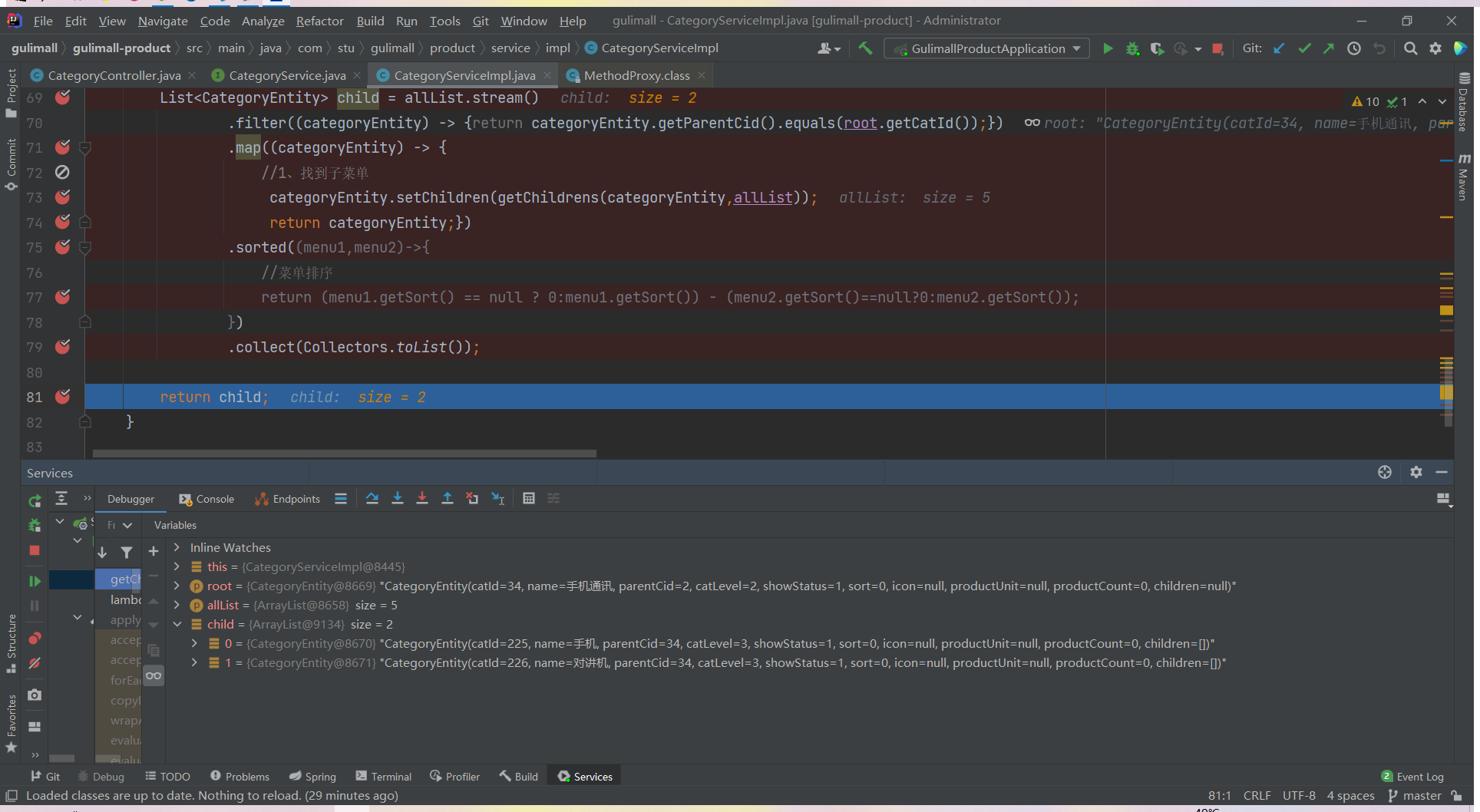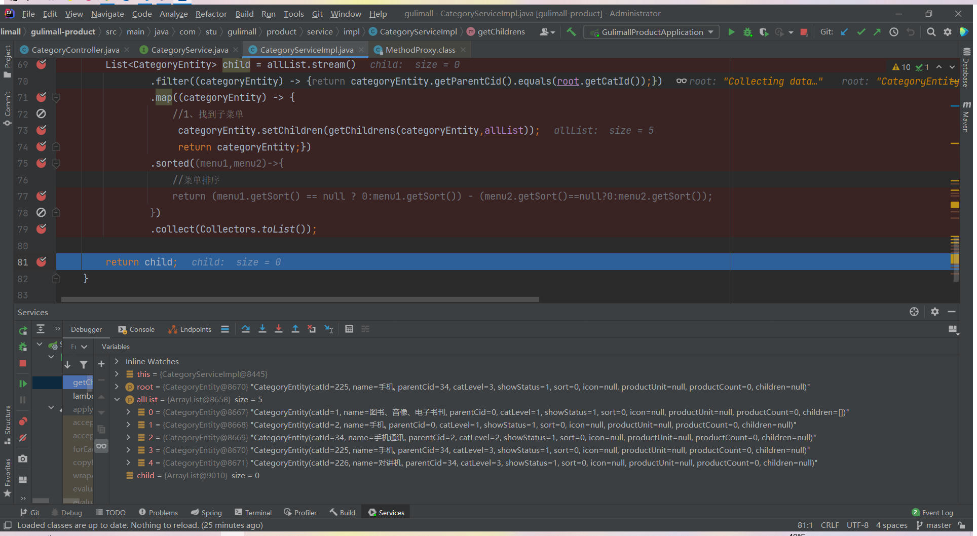 List<CategoryEntity> list = categoryService.listWithTree();