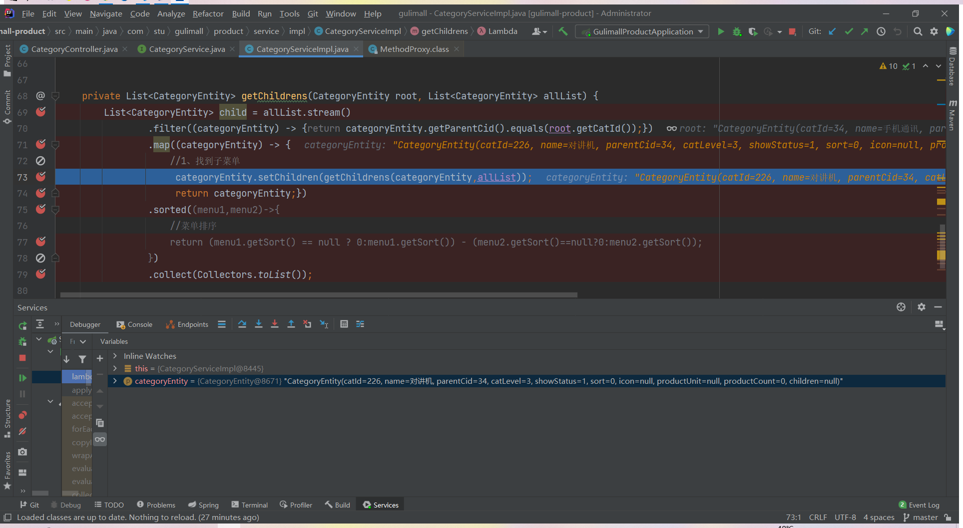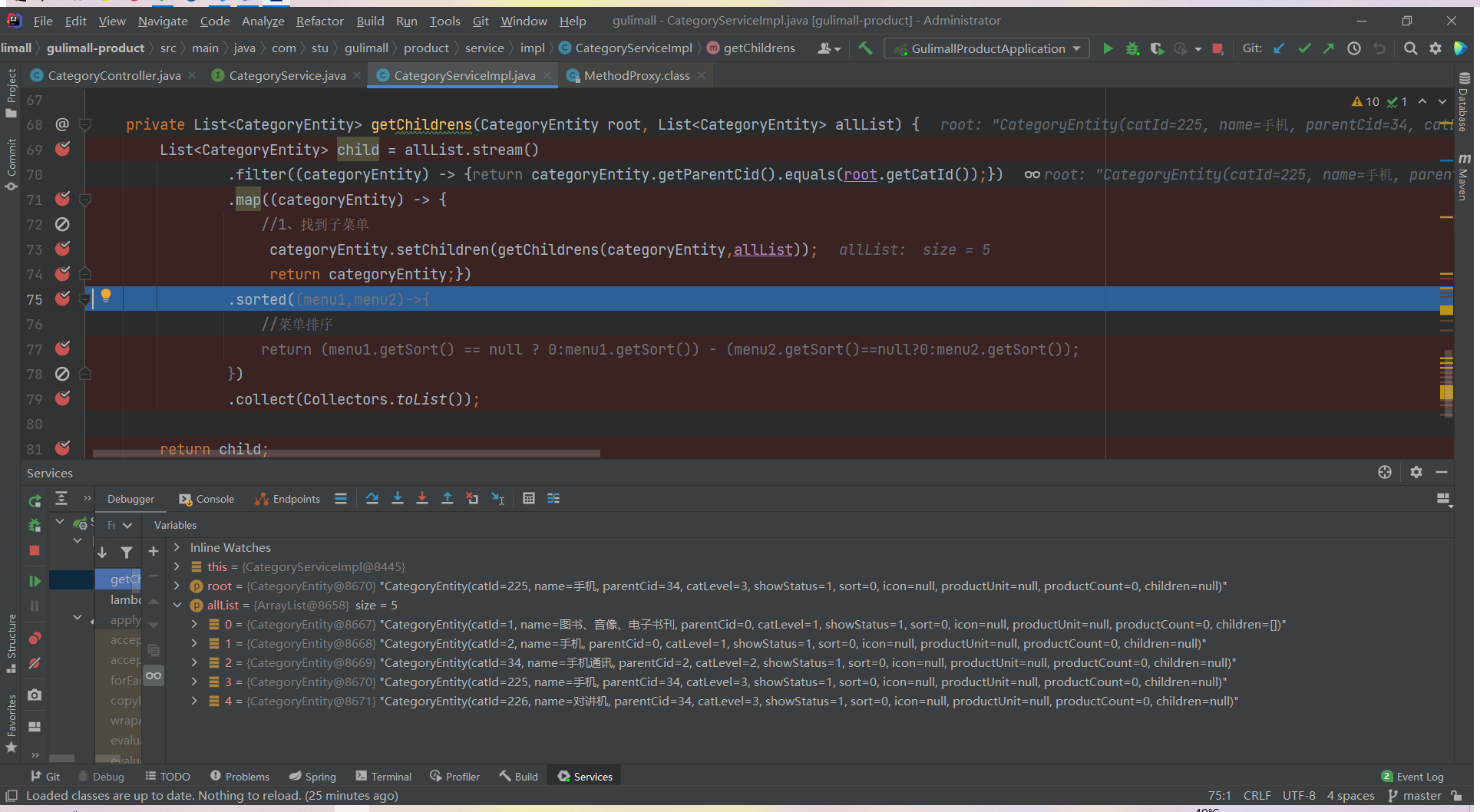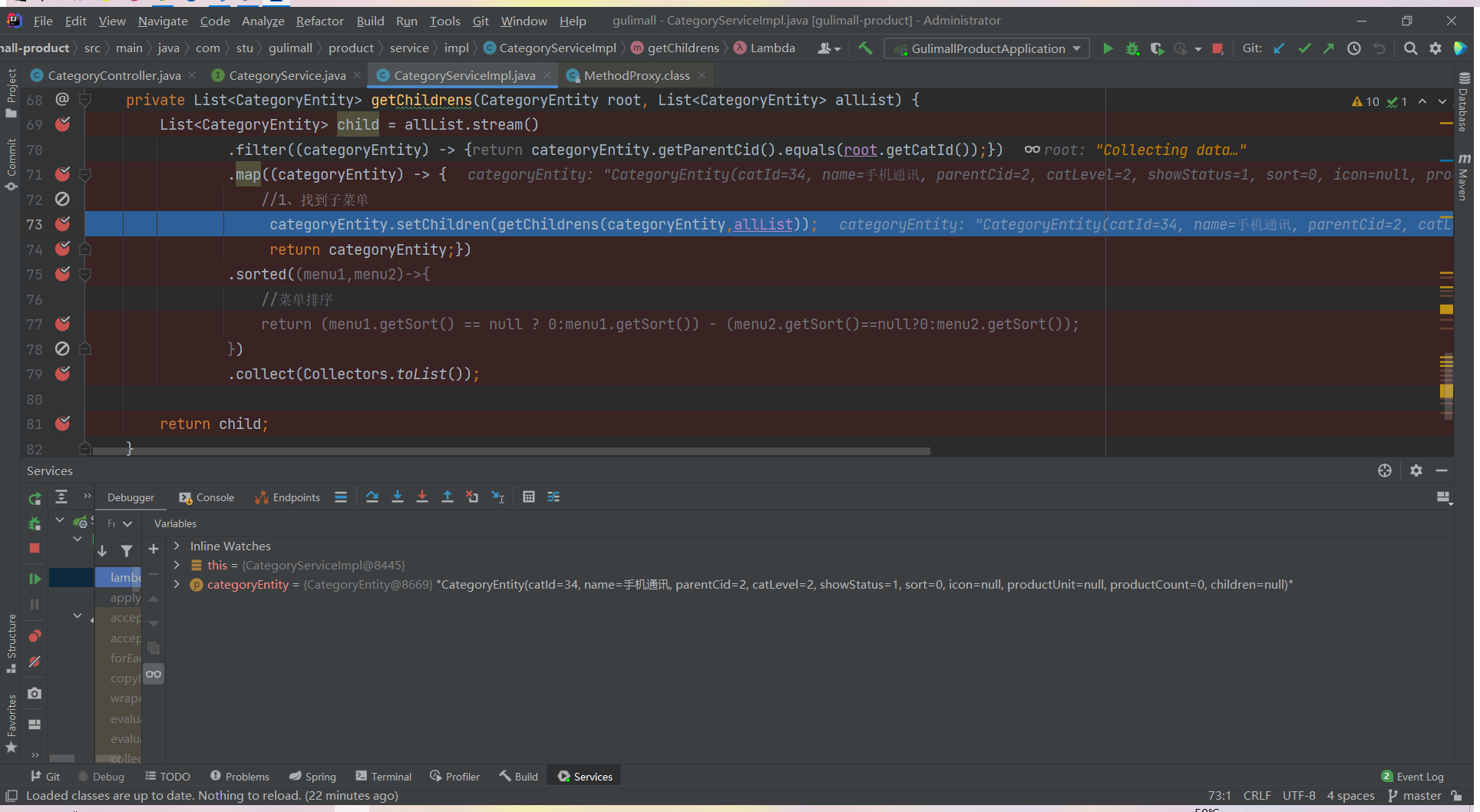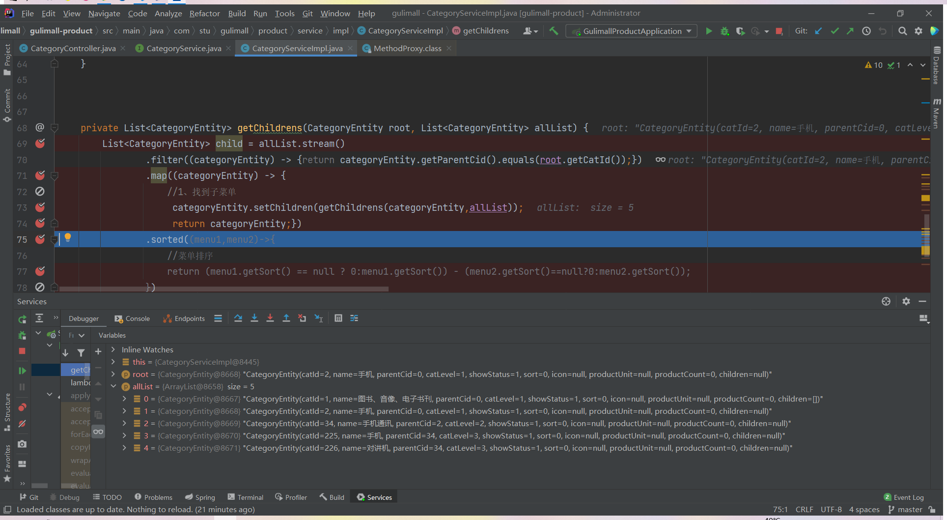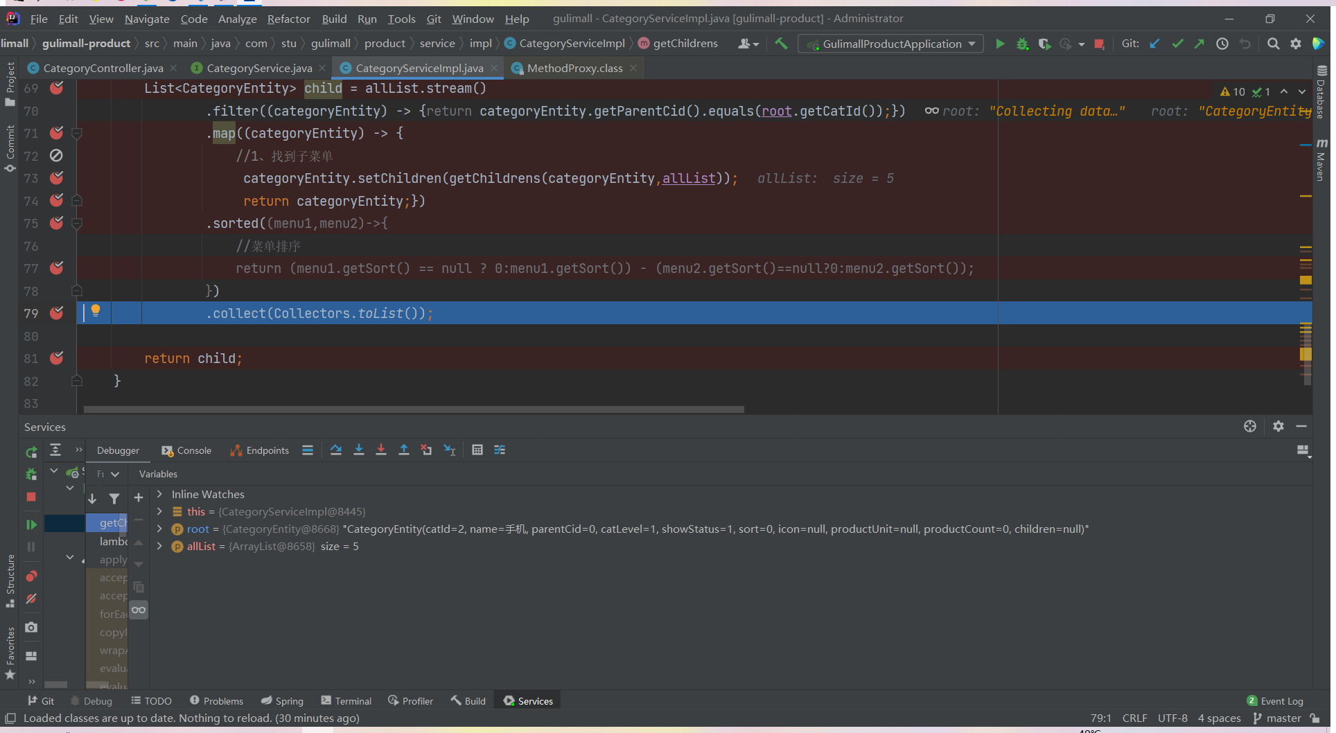 List<CategoryEntity> list = categoryService.listWithTree();