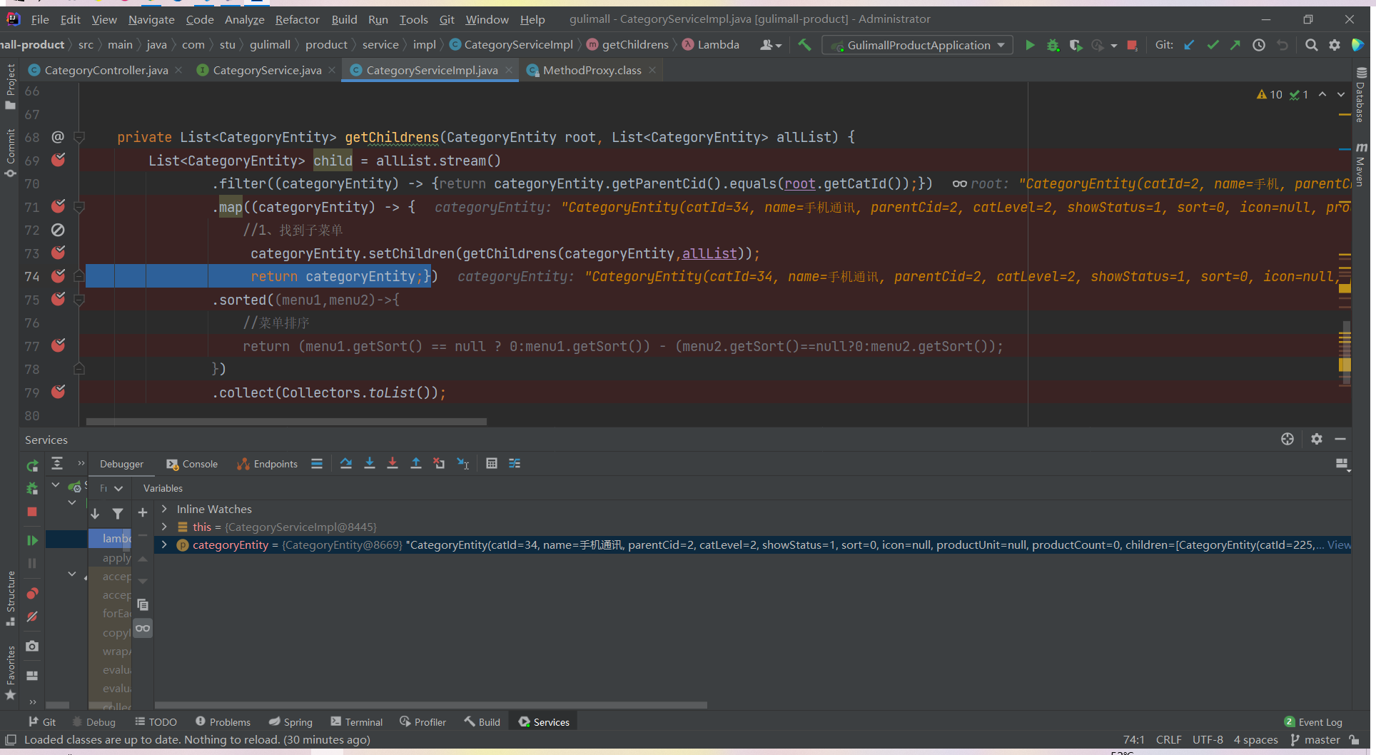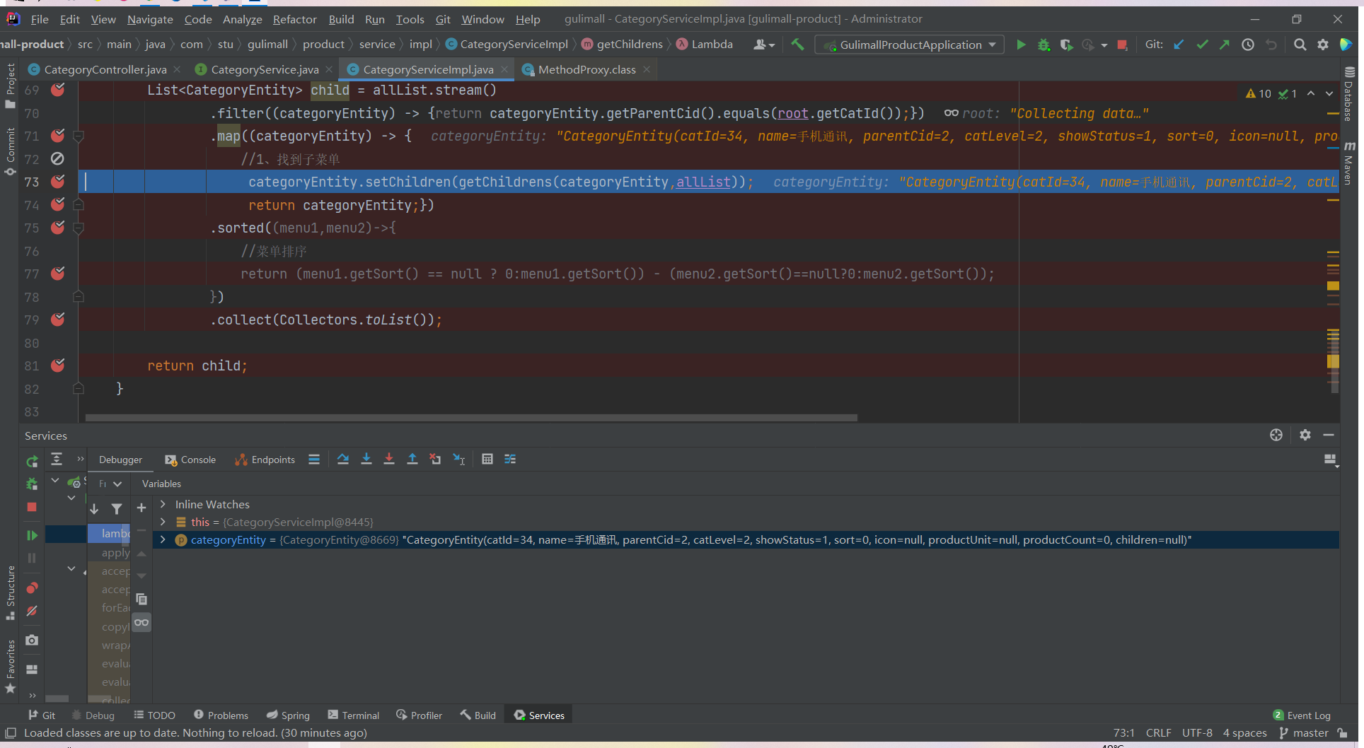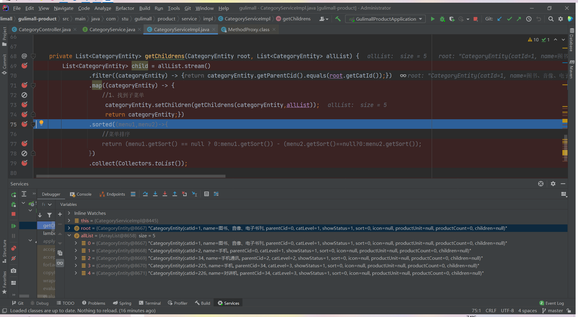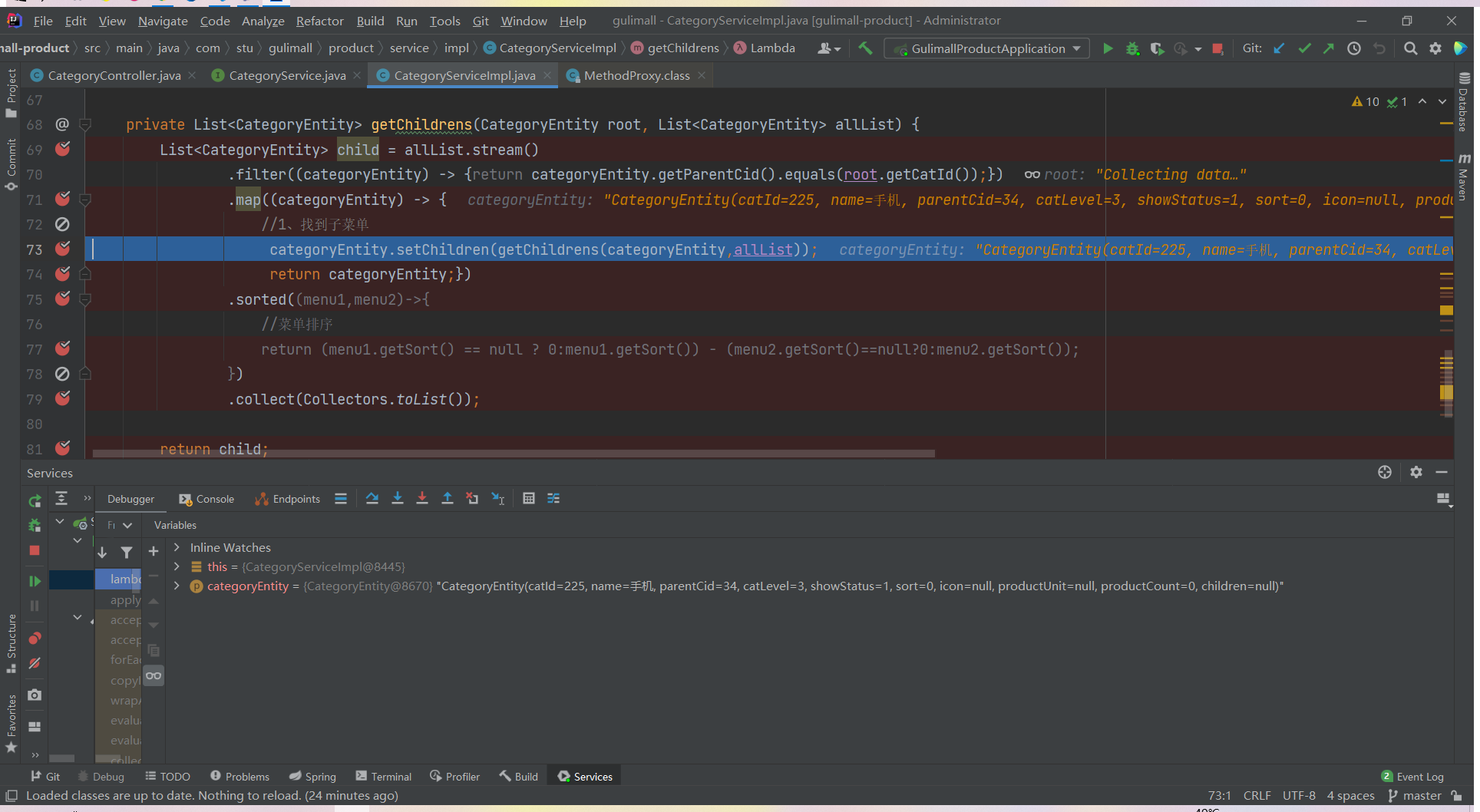 List<CategoryEntity> list = categoryService.listWithTree();