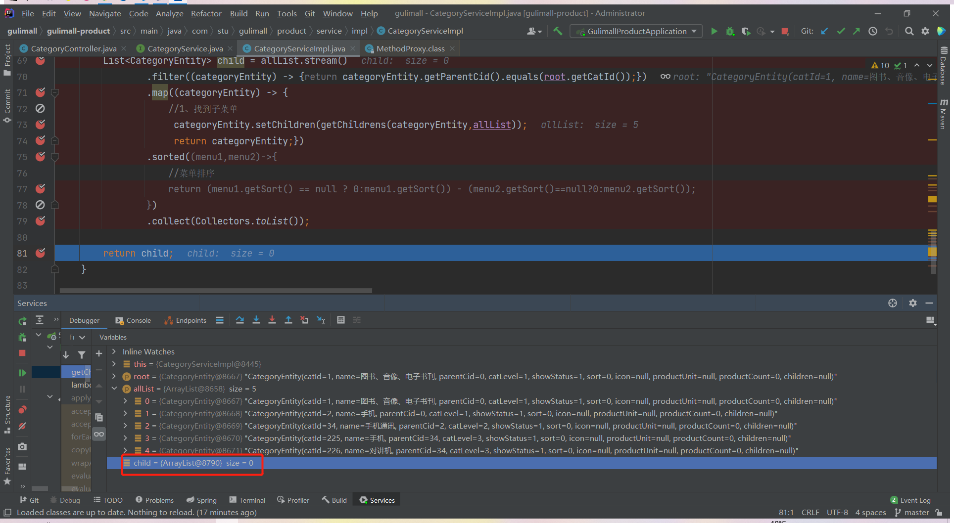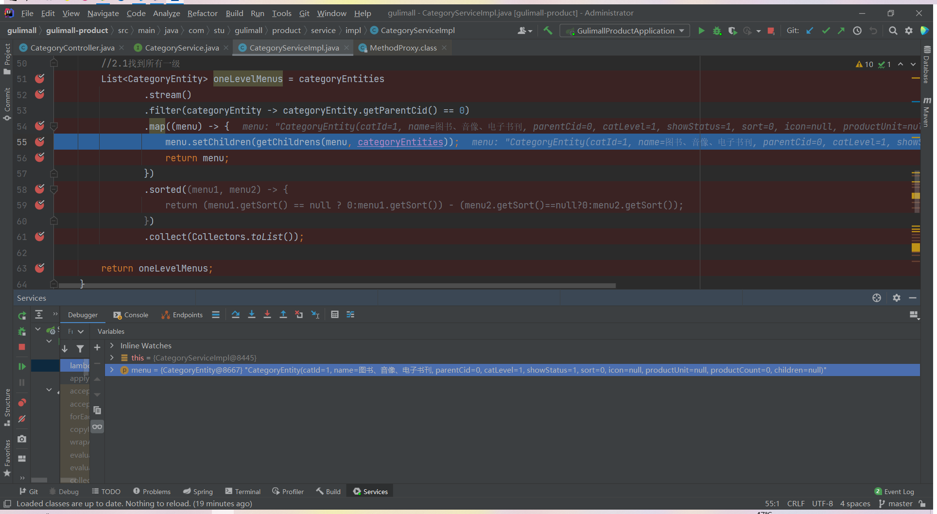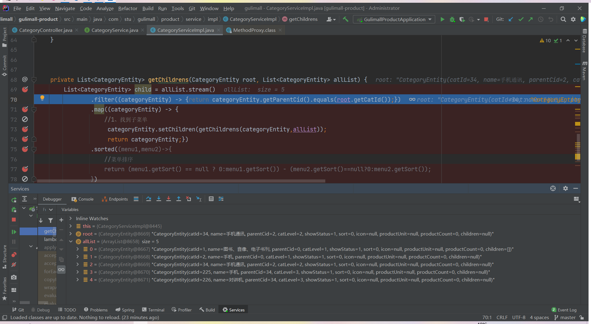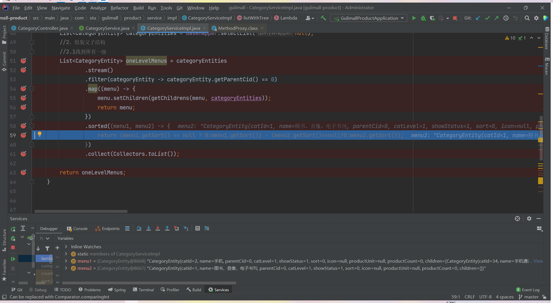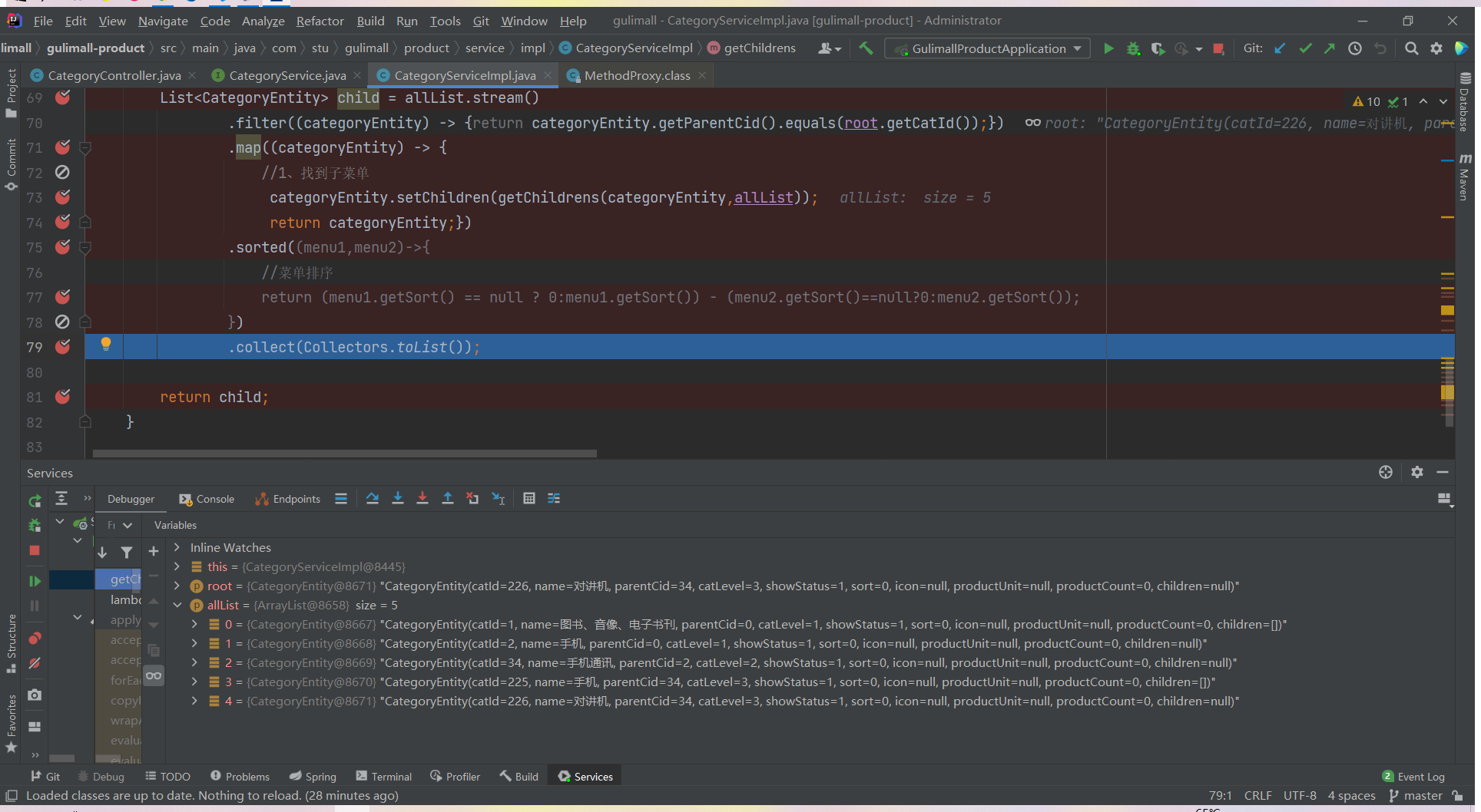 List<CategoryEntity> list = categoryService.listWithTree();