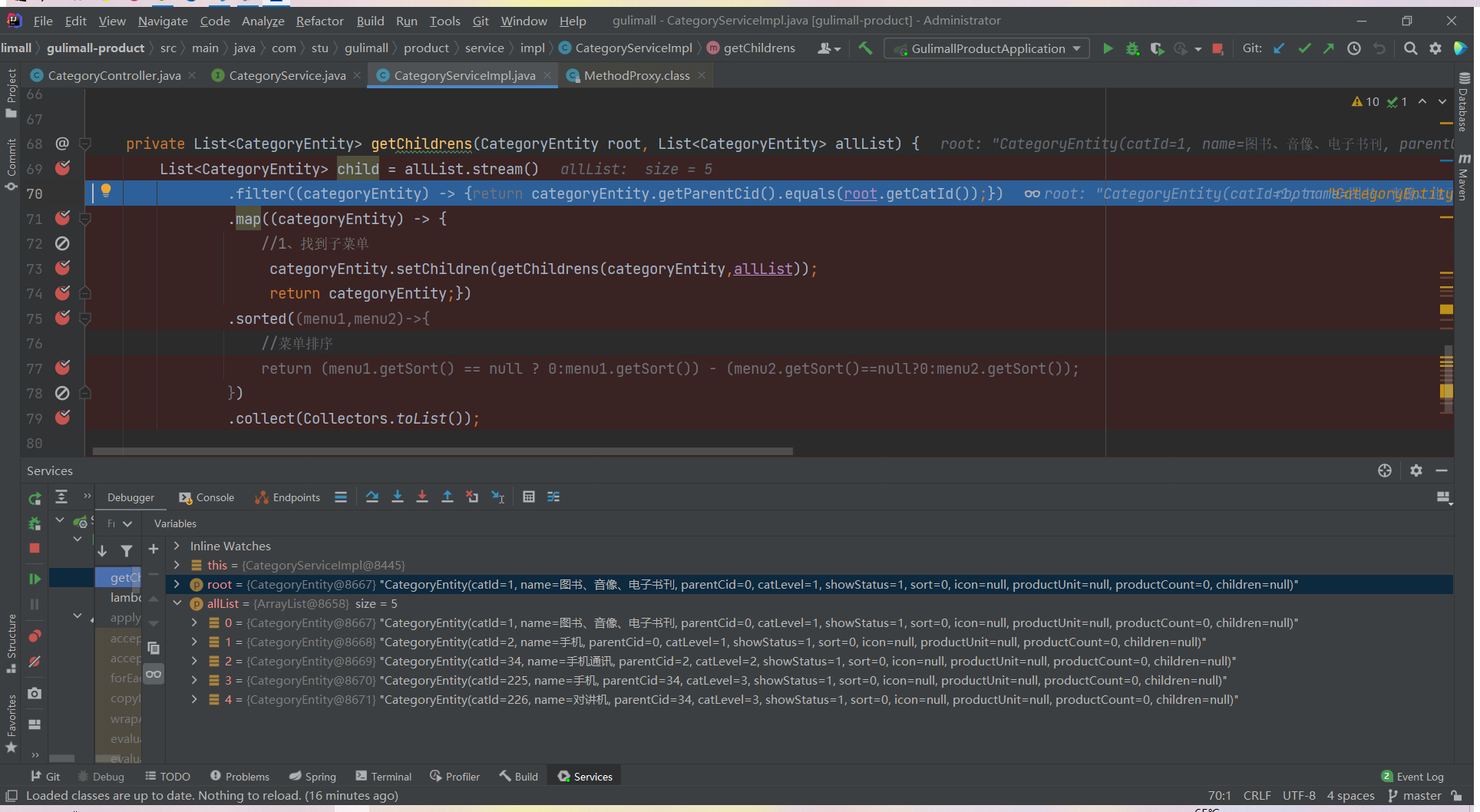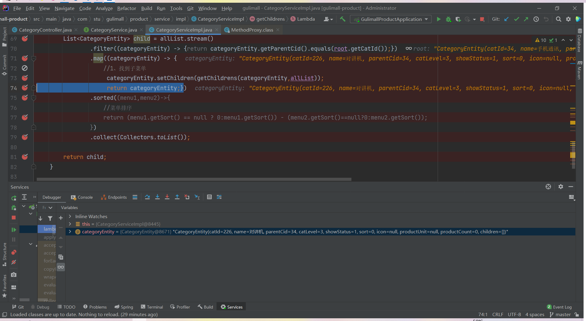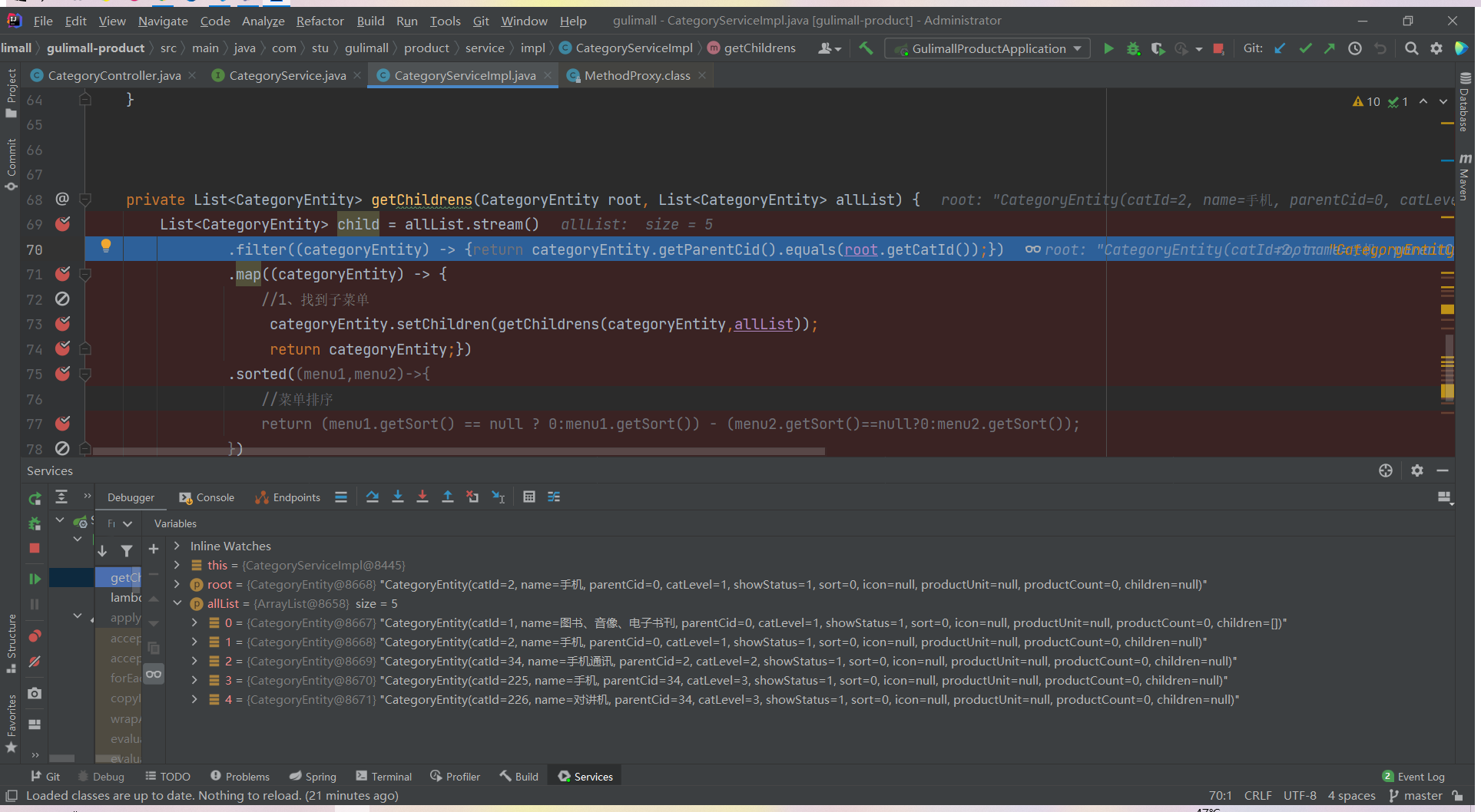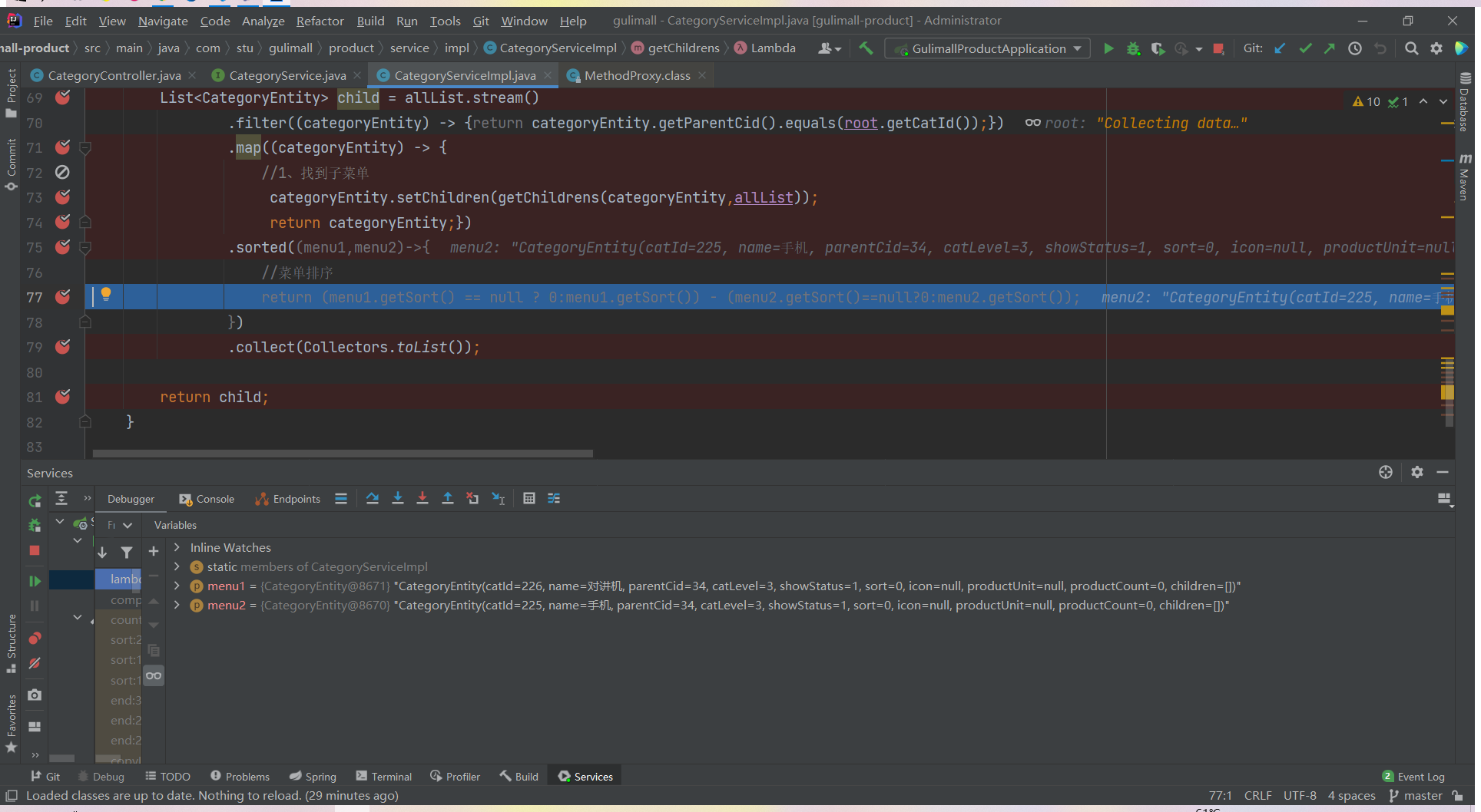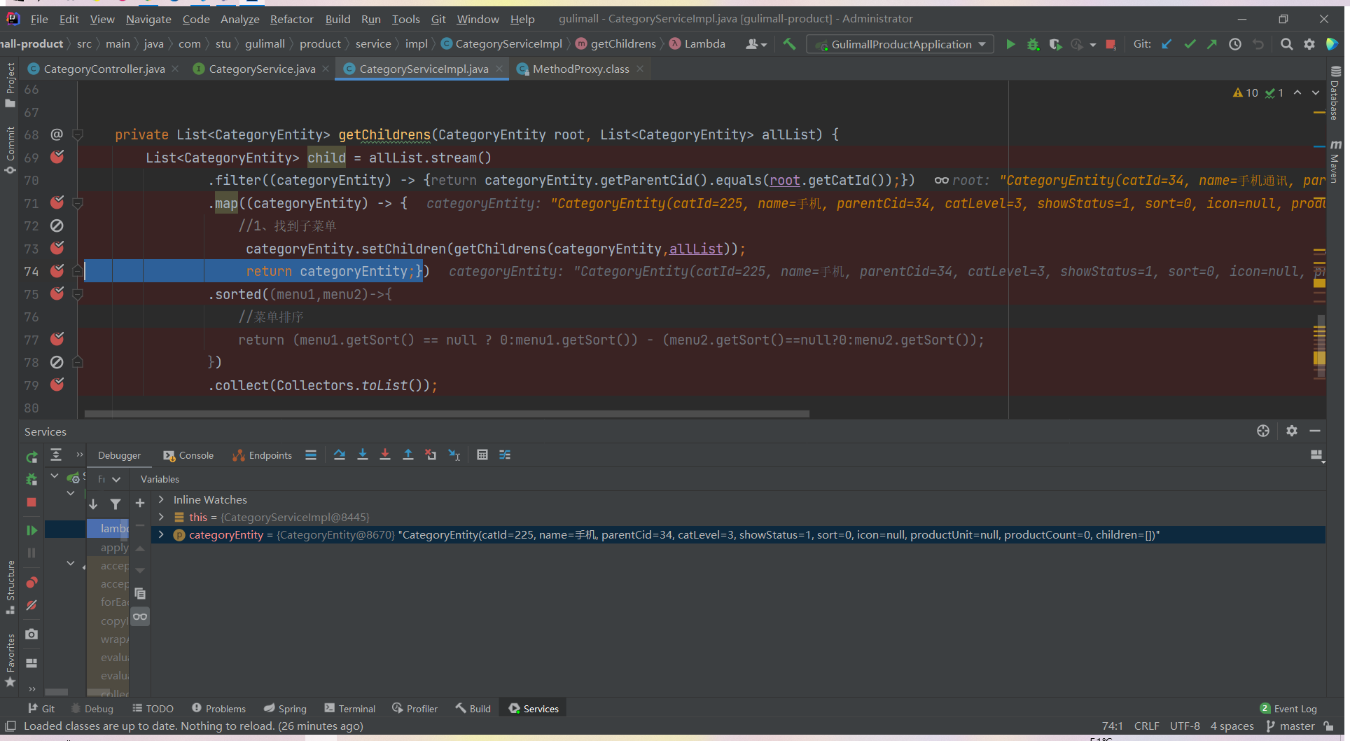 List<CategoryEntity> list = categoryService.listWithTree();