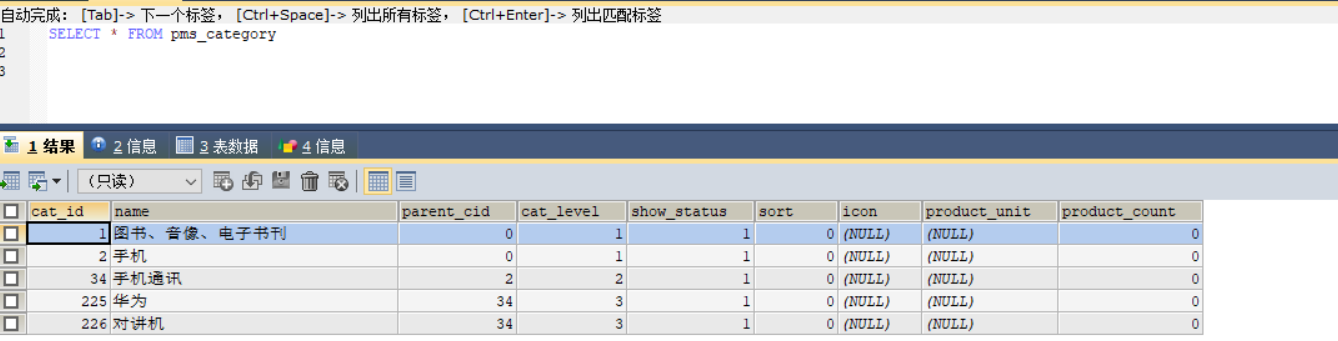 `cat_level` int(11) DEFAULT NULL COMMENT '层级',