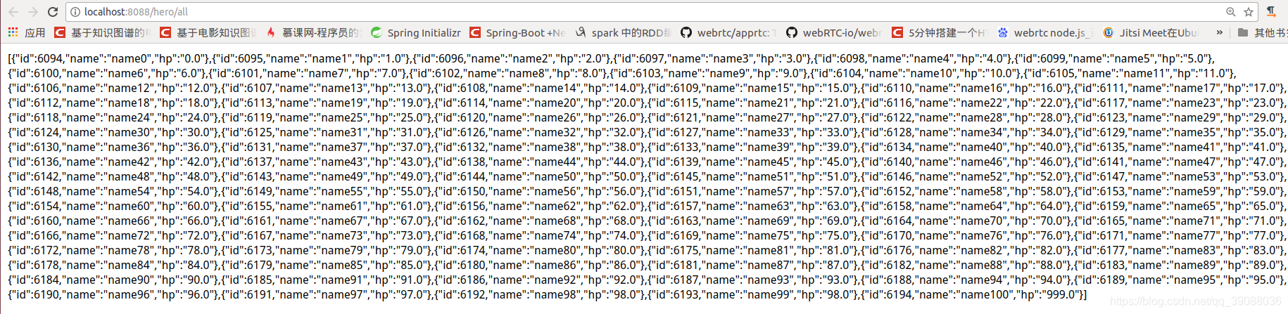 8.在浏览器中输入localhost:8088/hero/all。因为链接定义了两层,所以我们也要输入两层地址。