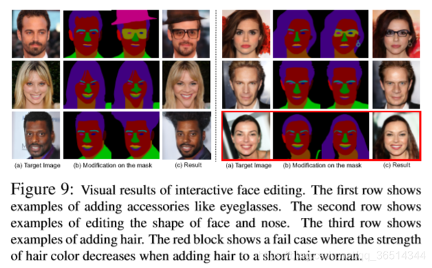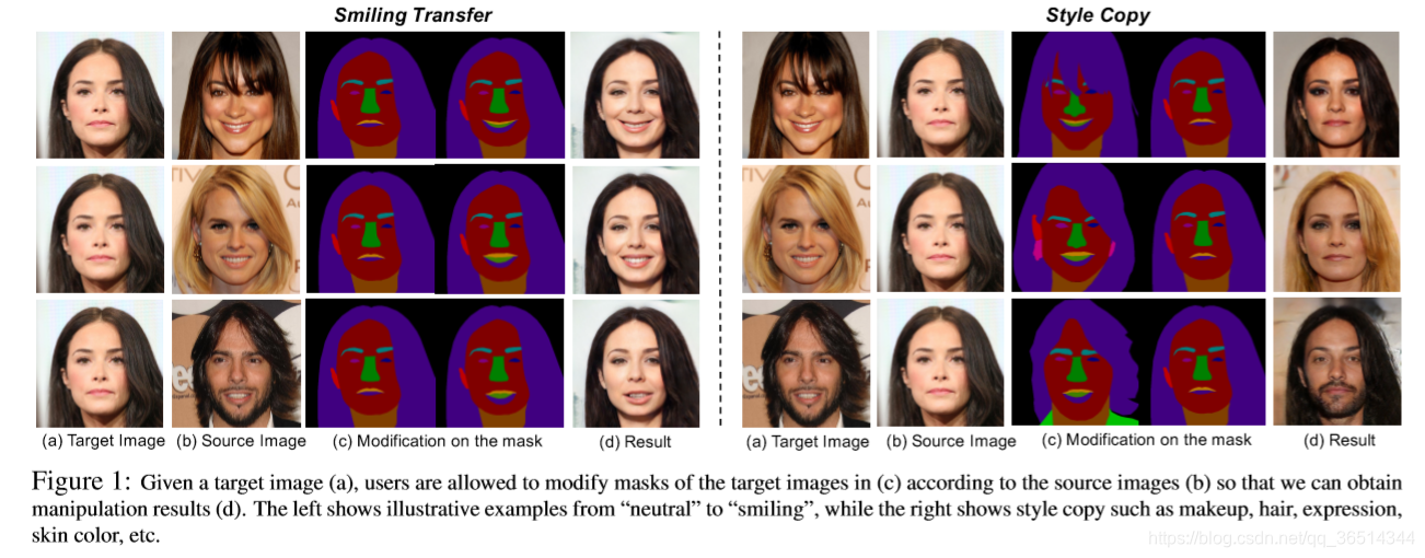 1) 我们提出的MaskGAN实现了多样的和互动的面部处理。在MaskGAN框架下,进一步提出了密集映射网络,为用户提供了一种使用其语义标签掩膜进行人脸操作的交互方式。2) 提出了一种新的训练策略,称为编辑行为模拟训练,增强了密集映射网络对推理过程中用户输入掩膜形状变化的鲁棒性。3) 我们贡献了CelebA Mask HQ,一个大规模的高分辨率人脸数据集,带有掩膜注释。我们相信这个面向几何学的数据集将为人脸编辑和处理方向开辟新的研究方向。