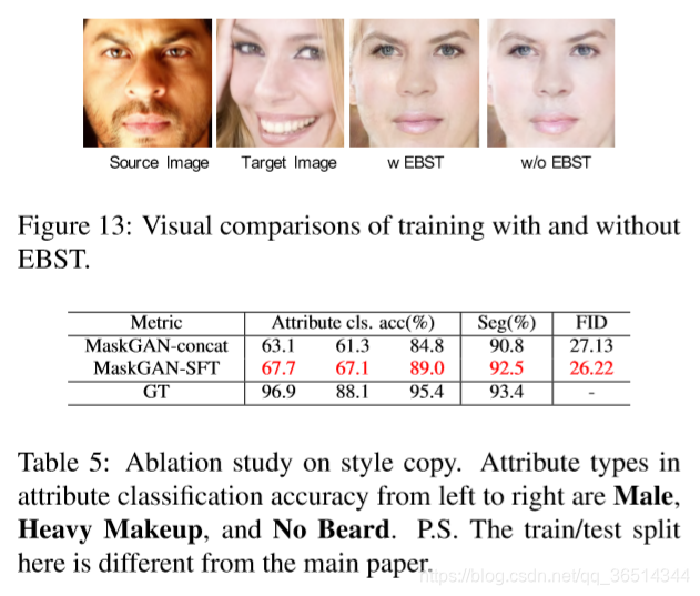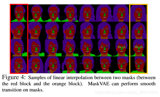 图13示出了两个掩模之间的线性插值的样本。MaskVAE可以在掩膜上执行平滑转换,EBST依赖于平滑的潜在空间来操作。