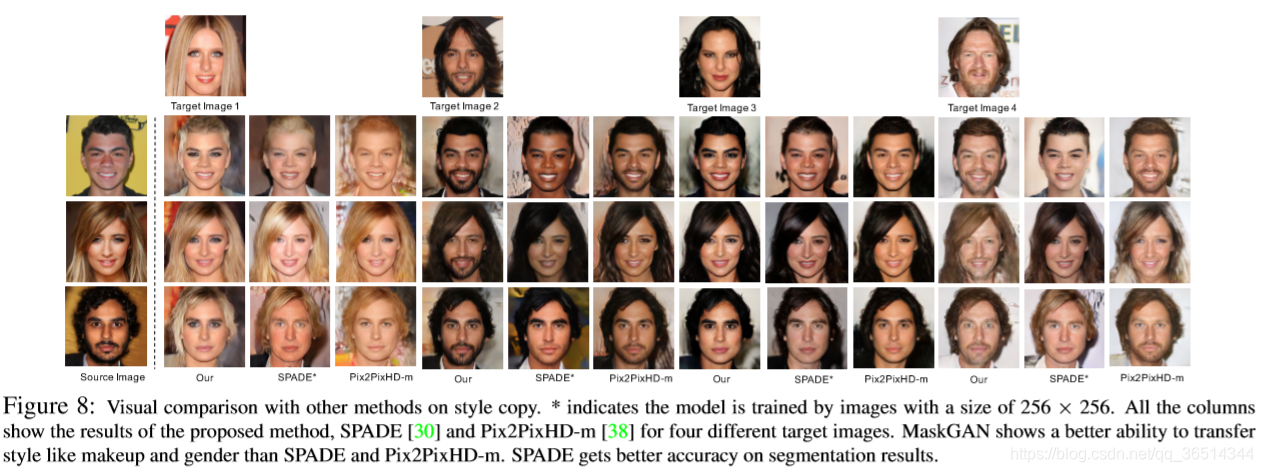 总体框架。我们的目标是使用MaskGAN实现结构化适用的人脸操作,给定一张目标图像,目标图像的语义掩膜