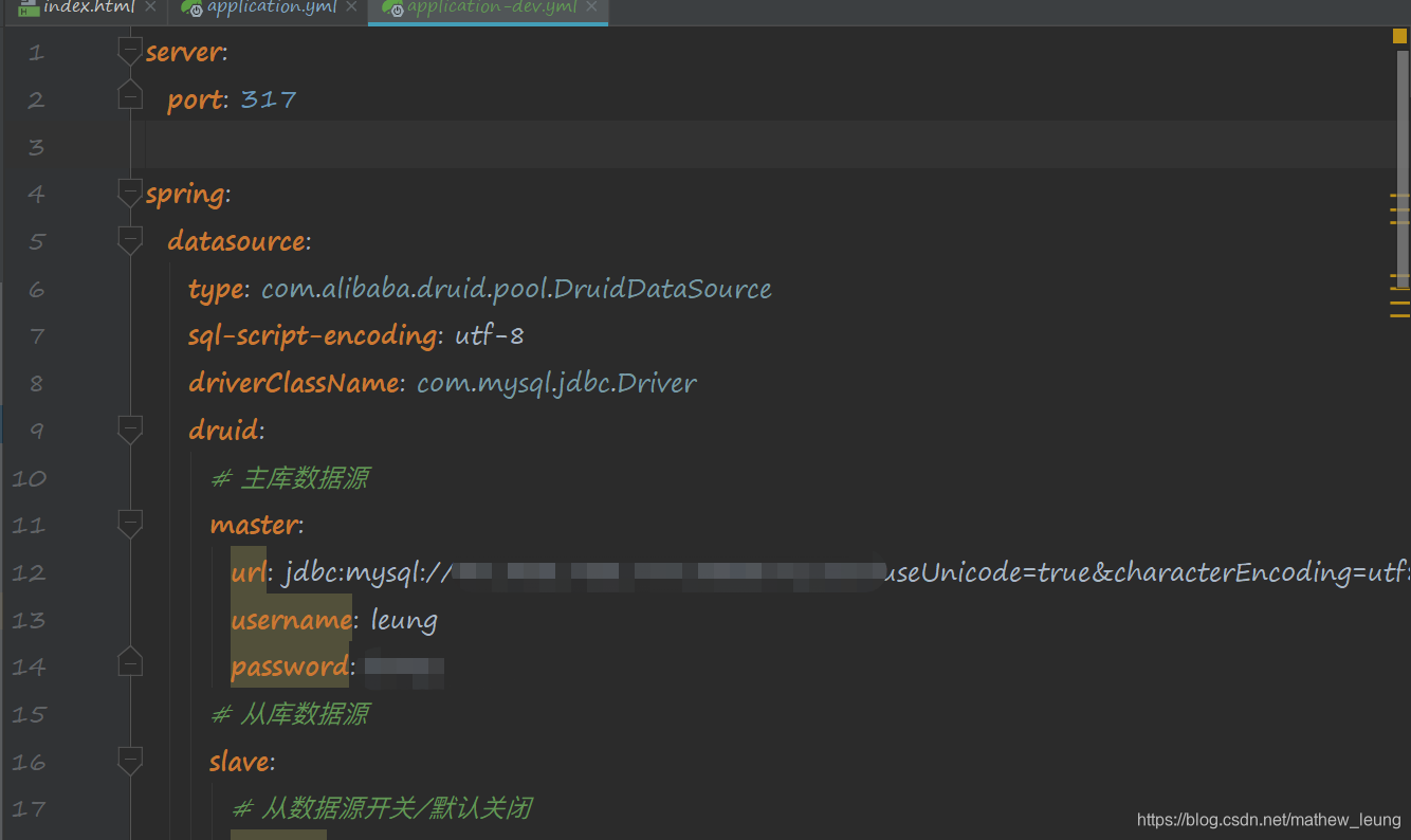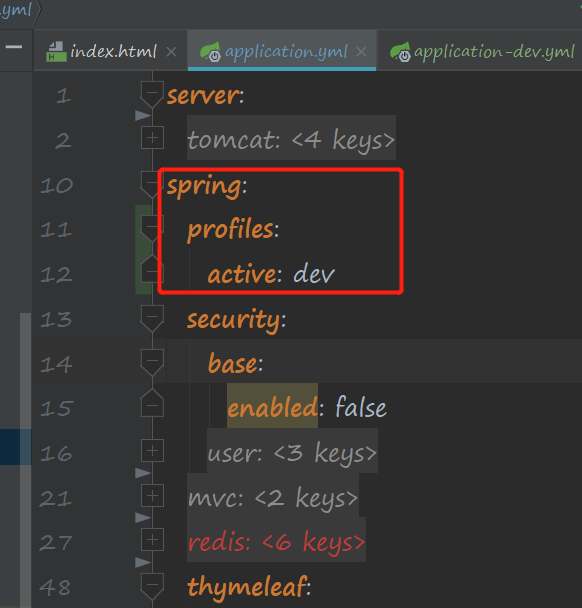 为了开发和上线发方便性,我们在项目配置上会有所不同。最普遍的就是端口号,数据库等配置的不一致。springboot默认的yml配置文件是application.yml。但是开发的时候可以使用一个yml,上线使用另外一个yml。