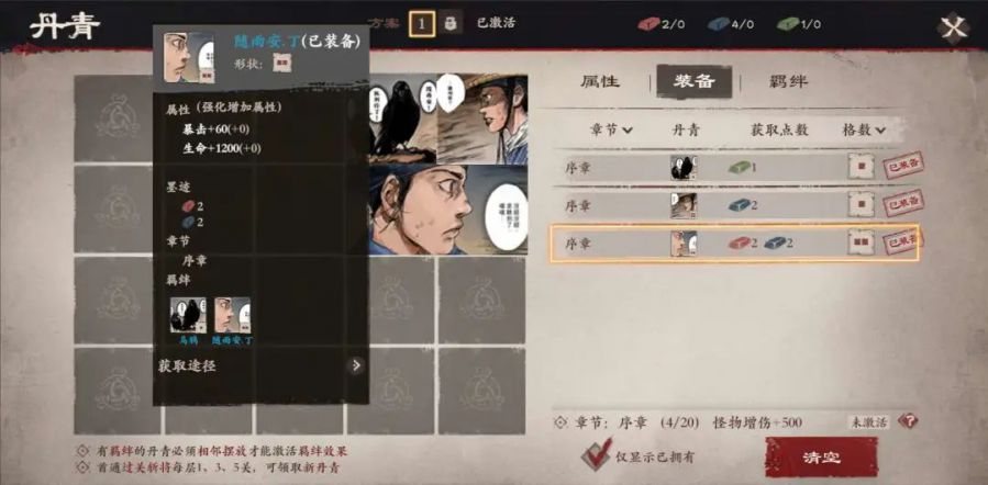 例如游戏中加入了一套体现IP原作性质的绘卷系统。玩家需要在游戏中收集一种名为“丹青”的东西来强化自身属性,而这种东西其实是一张张漫画分镜。当玩家集齐同章节“丹青”时,就能看到一页完整的章节漫画,同时进一步强化自身属性。