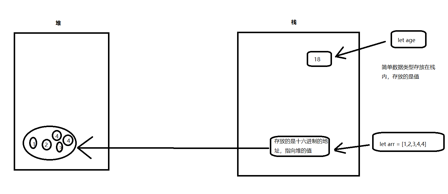 注意:js中并没有堆和栈概念,只是通过堆栈方式便于我们理解代码执行方式。 - 堆栈在内存中存在形式