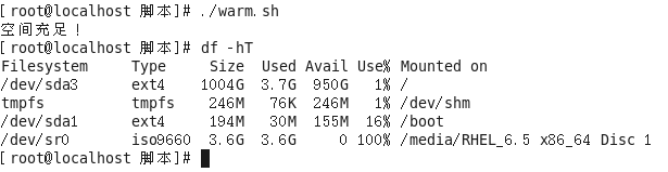 2、监测磁盘剩余空间(根分区),低于20%,发出报警信息(通过屏幕输出警告信息)