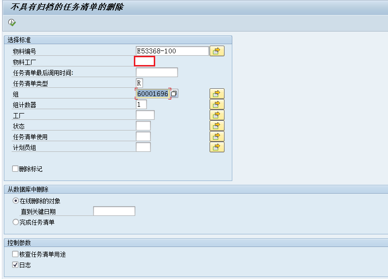 此时,需要将该物料的组计数器为1的工艺路线彻底删除才能达到组计数器号释放的目的。如下图事务CA98中,输入对应物料及工艺路线号码后点击执行。