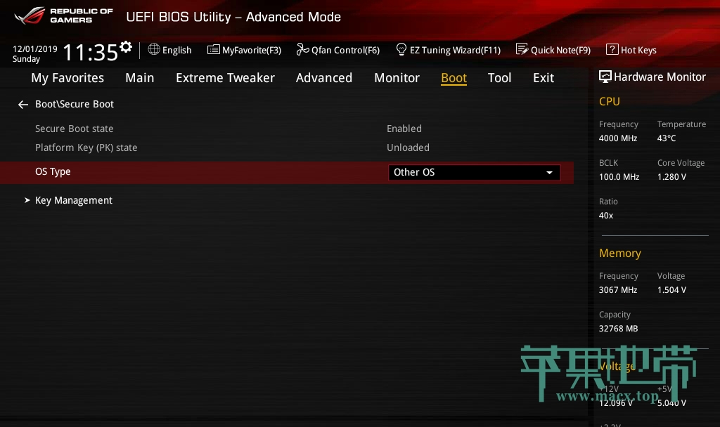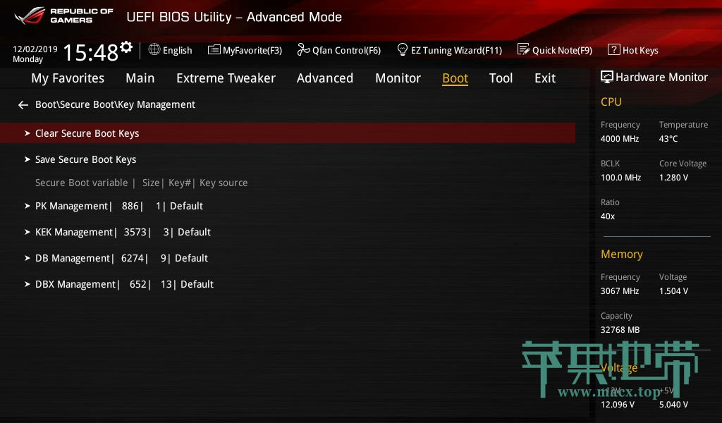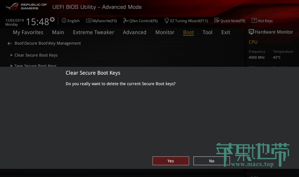 要禁用安全启动,只需“清除安全启动密钥”或删除PK密钥。