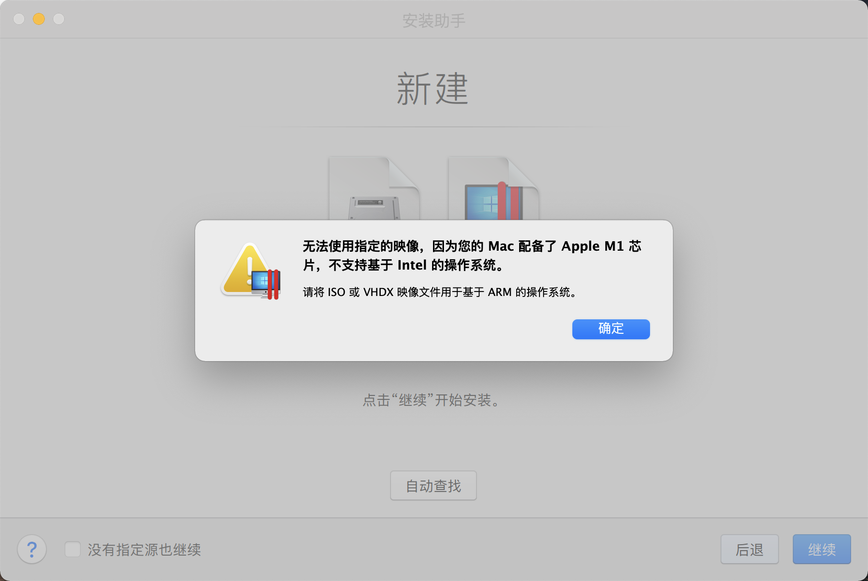 4、点击完成即可。但是由于M1与VMware可能还不兼容,爆出以下问题: