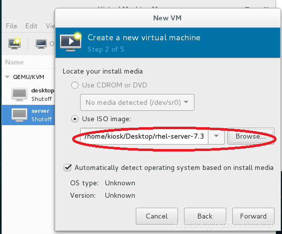(1)在真机中通过virt-manager命令打开虚拟机管理器,本实验采用镜像安装方式