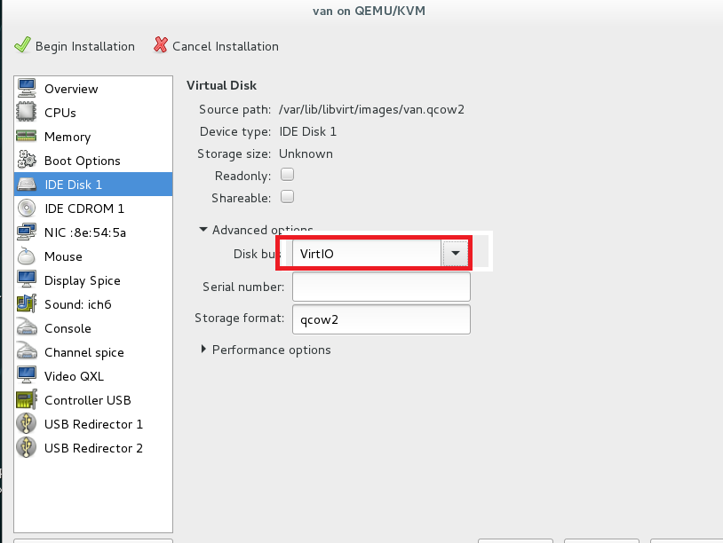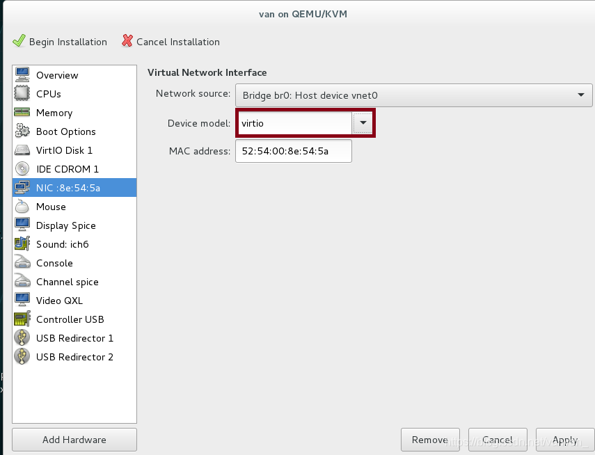 将磁盘与网卡都改为虚拟选项Virtio后,开始安装