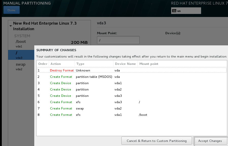 分别设置/boot的内存大小为200M,swap的内存为500M,/的内存直接为剩余内存
