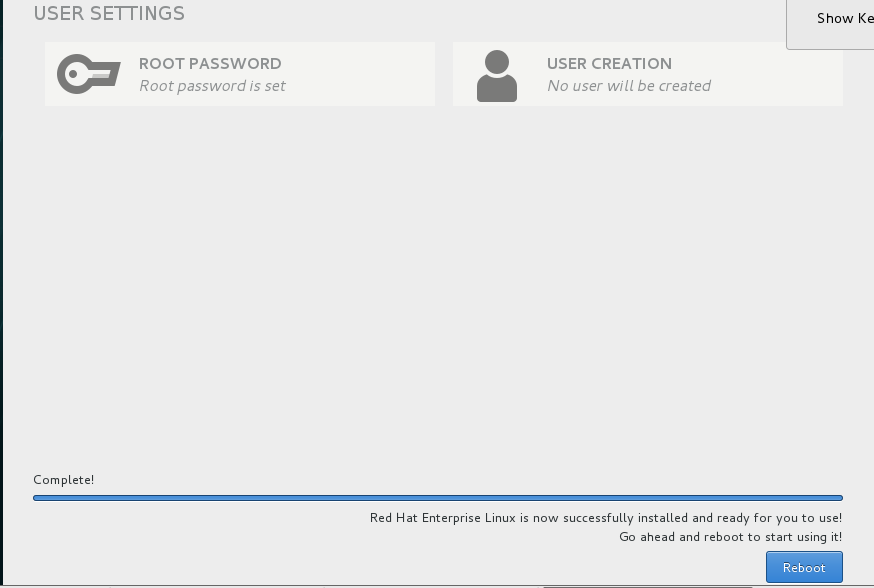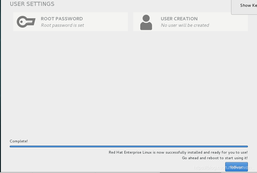 (8)设置超级用户的密码,直接进行安装,安装完毕后,点击reboot