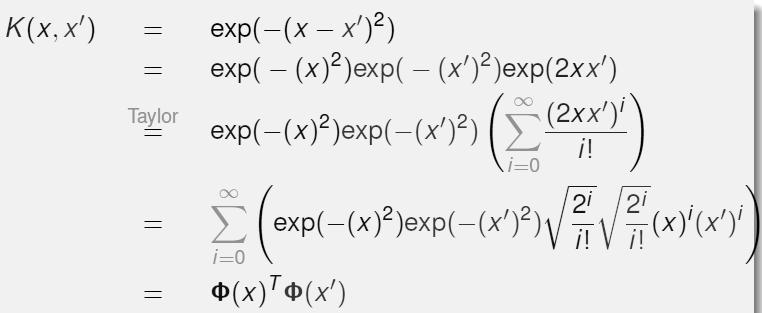 高斯核函数能给我做出多少维特征呢?我们对高斯和函数进行泰勒展开,化简后发现我们可以得到无穷维的特征。