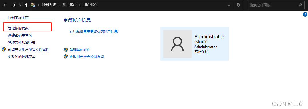 凭据分为Web凭据和Windows凭据,网址类的在web凭据管理界面,共享盘之类的在windows凭据管理界面。