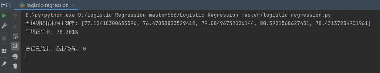 该Logistic回归模型诊断糖尿病的正确率是:78.301%