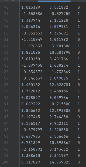 dataMat.append([1.0,float(lineArr[0]),float(lineArr[1])])