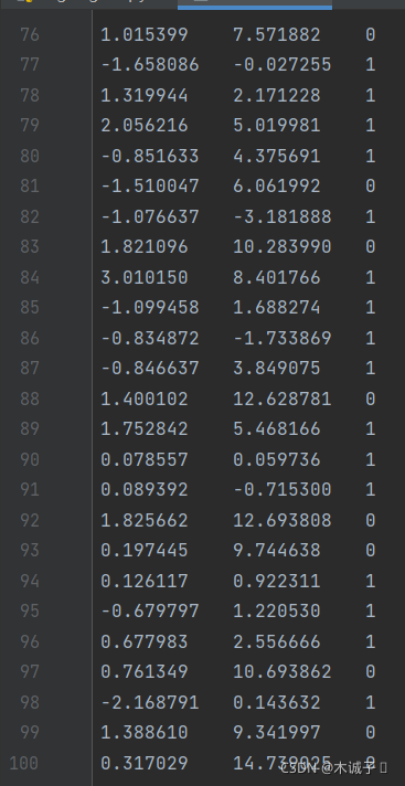 labelMat = mat(classLabels).transpose()#类标签矩阵:100*1列向量