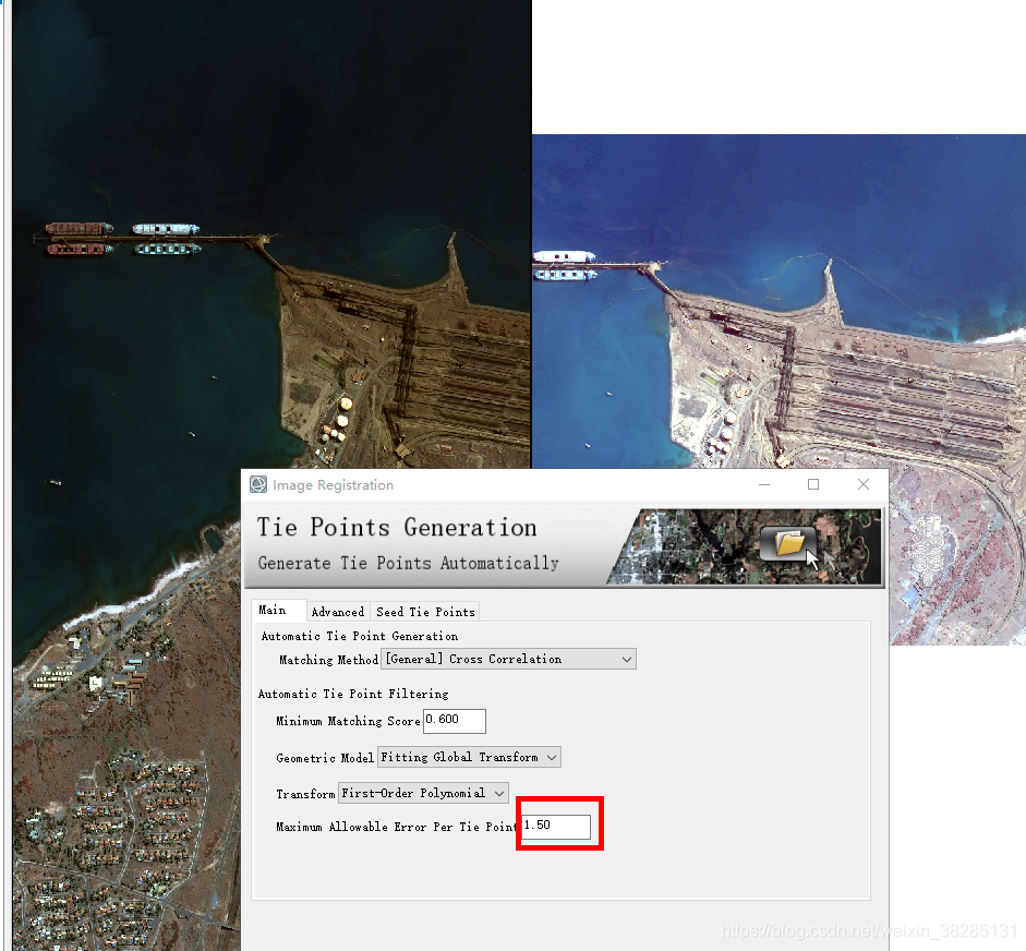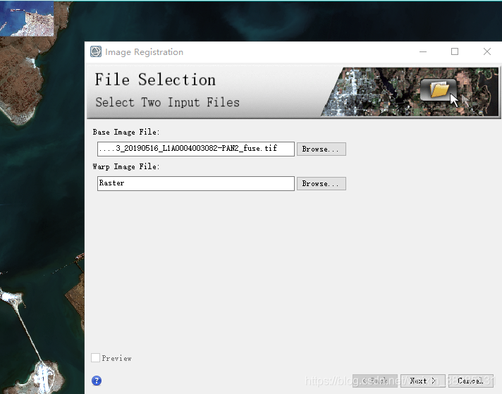 Base Image File 选择基准遥感影像 Warp Image File 选择截图
