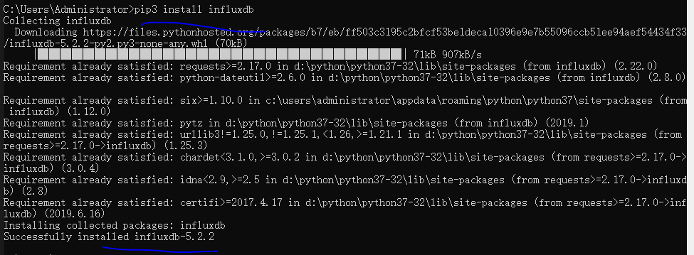python操作influxdb:需要安装pip3 install influxdb