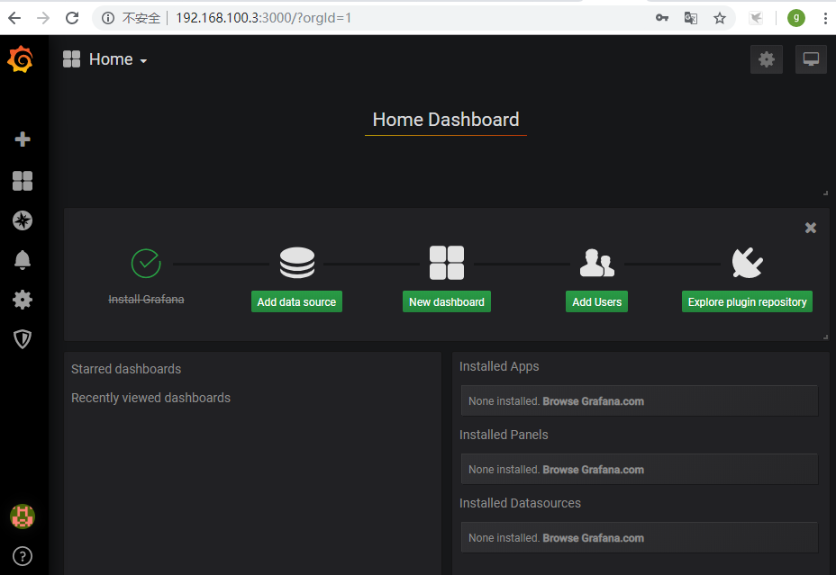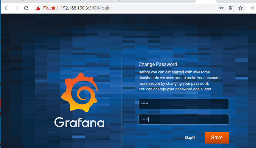 systemctl restart firewalld3.访问grafana :http://192.168.100.3:3000 输入用户名和密码 admin/admin