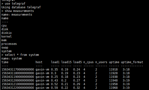 show measurements #显示该数据库中所有的表