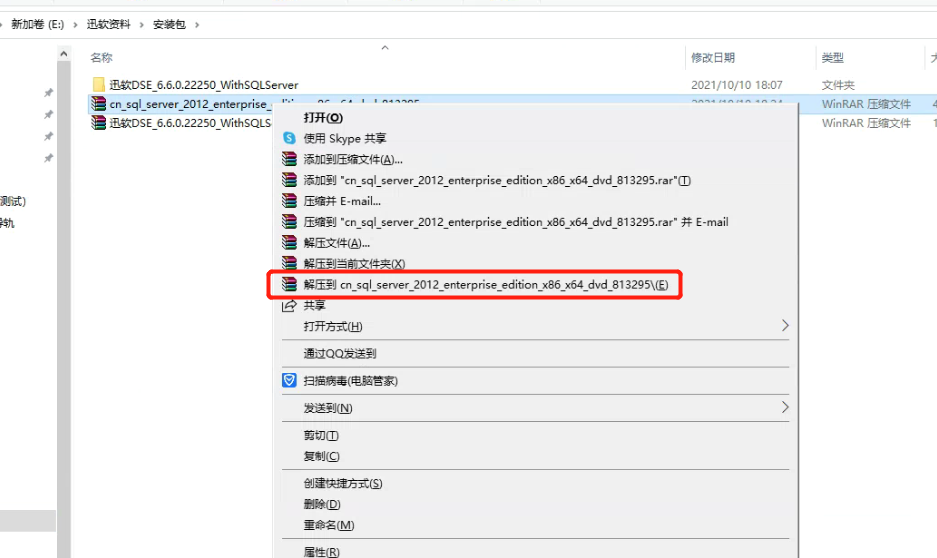 2. 右键数据库安装文件,解压该安装包,如下图所示