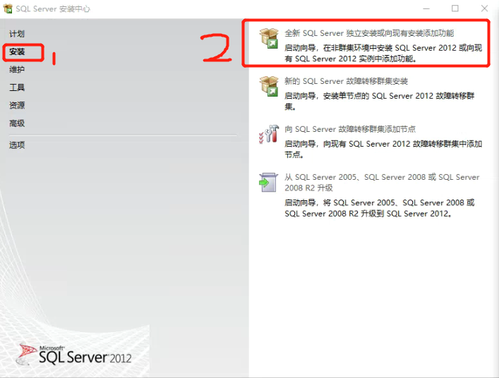 5. 我们会看到一个安装中心,我们点击安装,点击全新安装,如下图所示