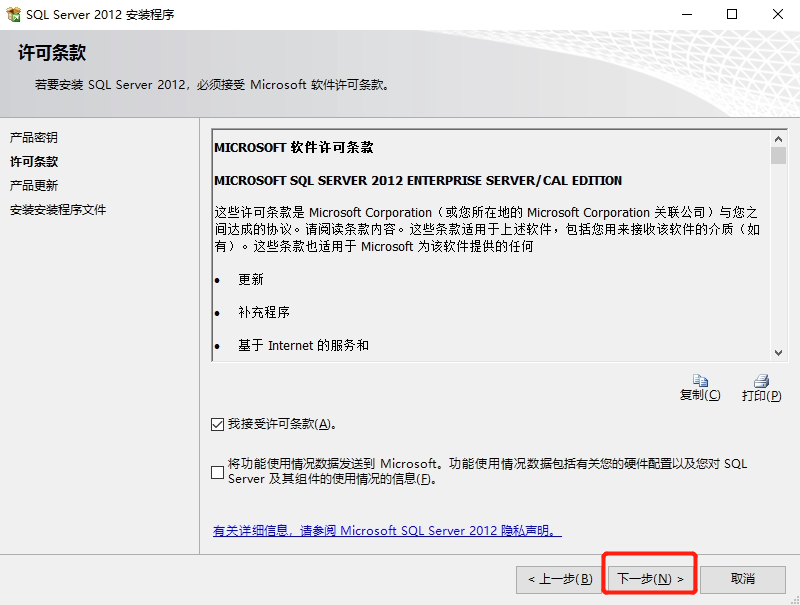 8. 这是许可条款,勾选我接受,点击下一步,如下图所示