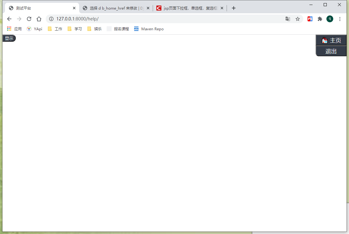 虽然首页我们成功了,但是影响到了其他页面,比如帮助页面。我们发现进入帮助页面后,一片空白。后台报错。