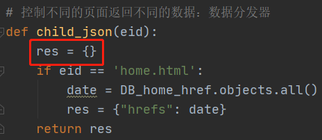 这里修改很简单。我们在最开始给res = {} 即可。这样如果有控制说res={什么数据} 也可以,没有指定的那就是不需要数据,就当{}空字典返回即可。