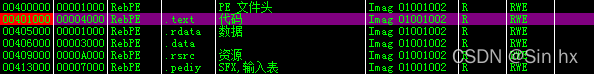 复盘一下整个过程:外壳两次使用了跨段转移指令:第1次从.pediy区块跳到外壳的第2部分(其中第2部分的内存空间是函数VirtualAlloc随机分配的);第2次从外壳的第2部分跳到程序本身的代码所在的区块,在本例中是.text区块,这也是判断该处是否为OEP的关键。当程序停在OEP是,在OD中通过Alt+M查看各区块情况:
