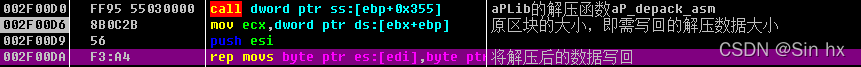 上面的代码是aPLib的解压函数aP_depack_asm。 Ctrl+F9返回到上一层: