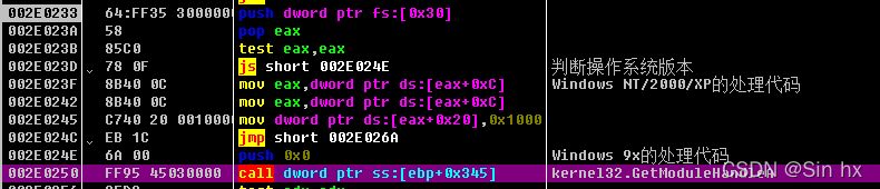 绝大多数PE加壳程序在被加密的程序中加上了一个或多个区块,当外壳代码处理完毕就会跳转到程序本身的代码处。所以根据跨段的转移指令就可以找到真正的程序入口点了。