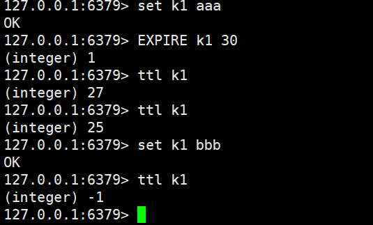 注意:在redis中一旦设置了过期时间,是无法刷新时间的,在过期之前,如果修改数据,过期时间会变为-1.
