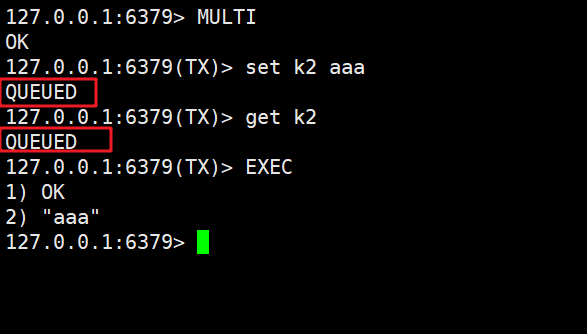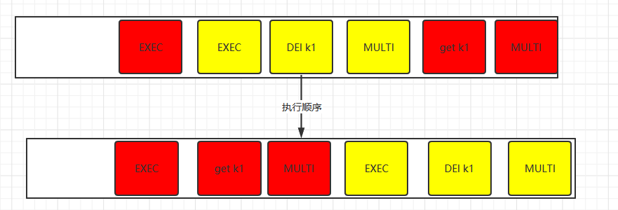 两个事务谁先执行EXEC,就会把队列内的语句全执行。