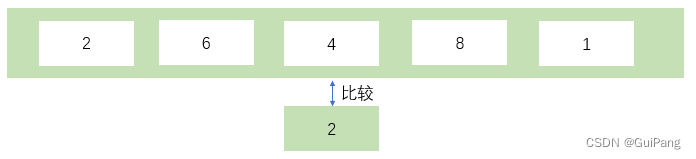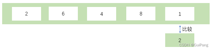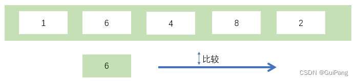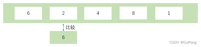 第一轮:首先用第一个位置的数据(6),与下一个数据(2)进行比较: