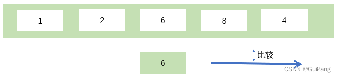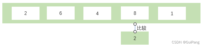 2小于4,不用交换位置,2继续与下一个(8)进行比较: