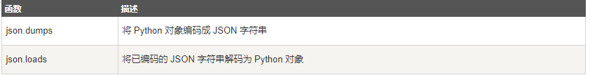 - 而将json字符串解码为python 对象时用的是json.loads()