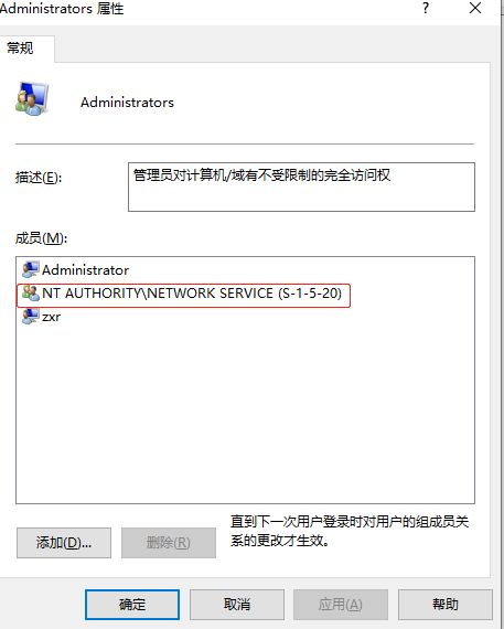 把NETWORK SERVICE添加到Administrators组