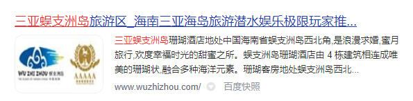 接下来, 百度搜索 '三亚蜈支洲岛', 找到了一个类似官网的网站, 点进去看看有没有我们需要的信息