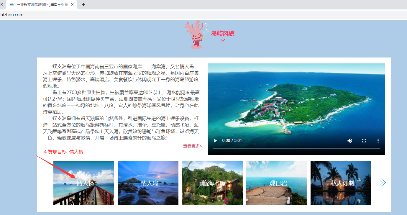 进入官网后, 往下滑, 滑到中间的 '岛屿风貌' 模块有一个情人桥, 跟我们的图片很像, 点进去看看